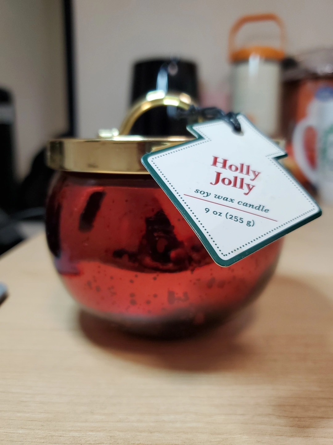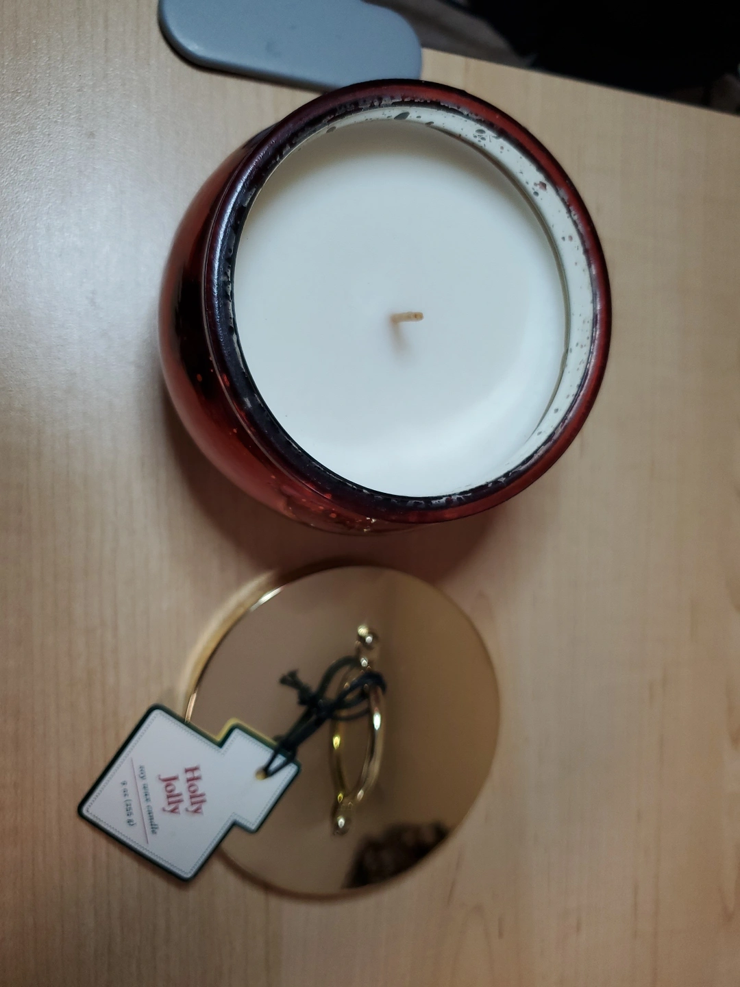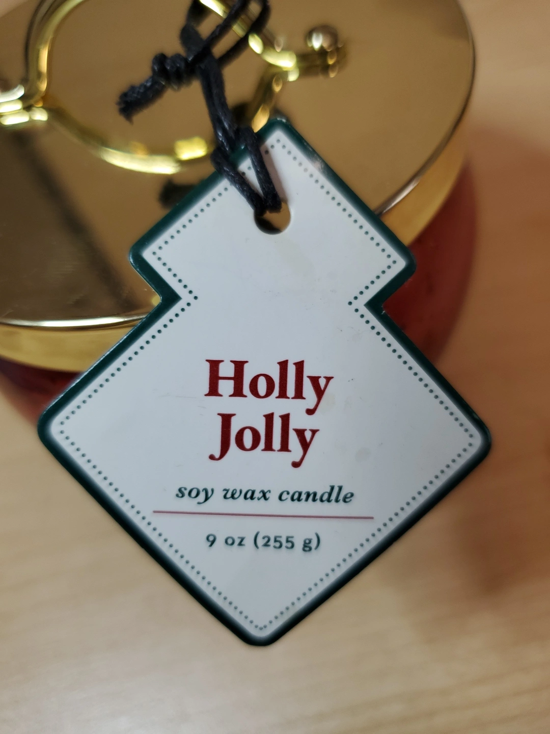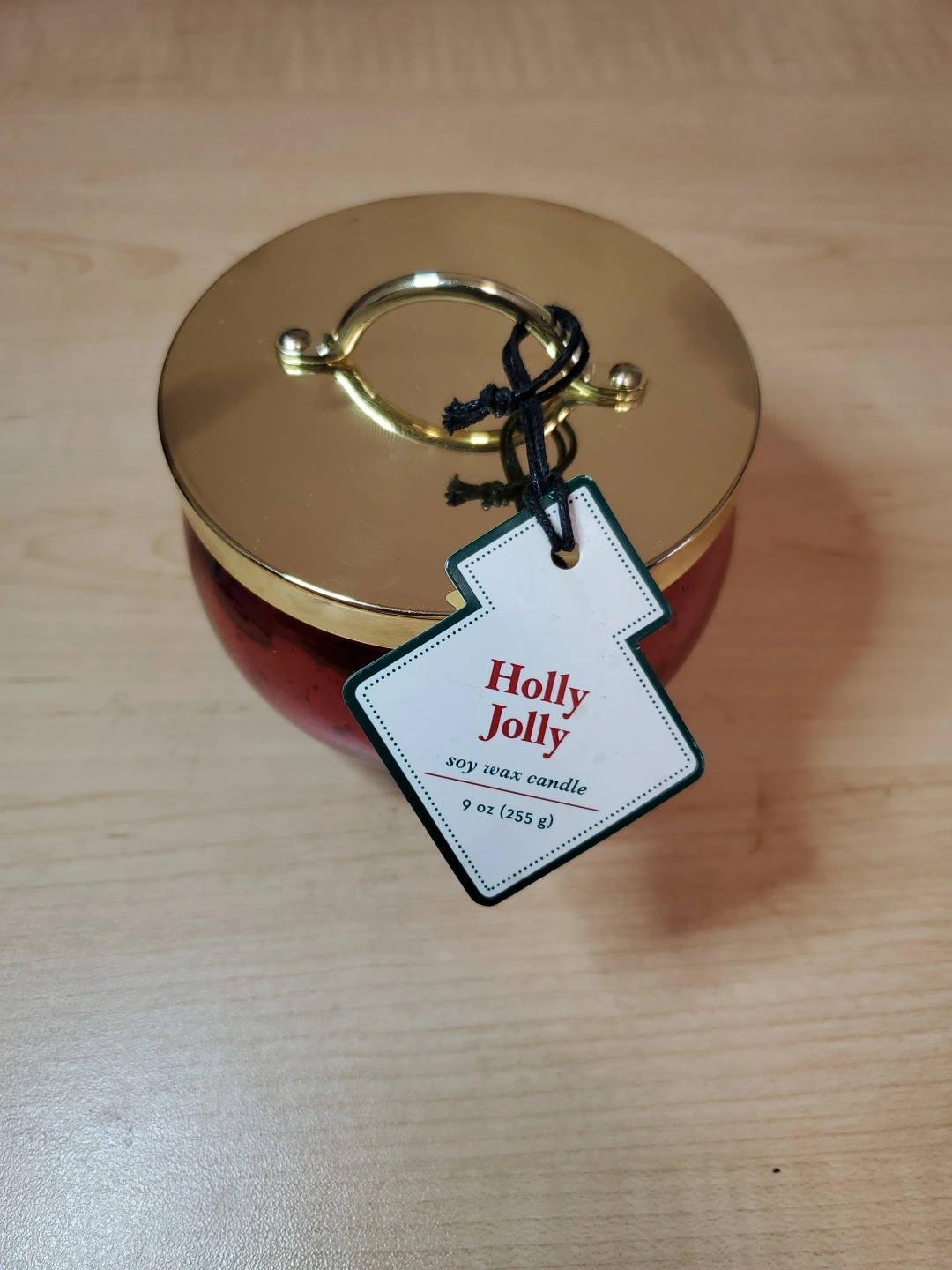 22Selling a Holly Jolly soy wax candle, 9 oz (255 g). It has a lovely red jar and a gold lid!