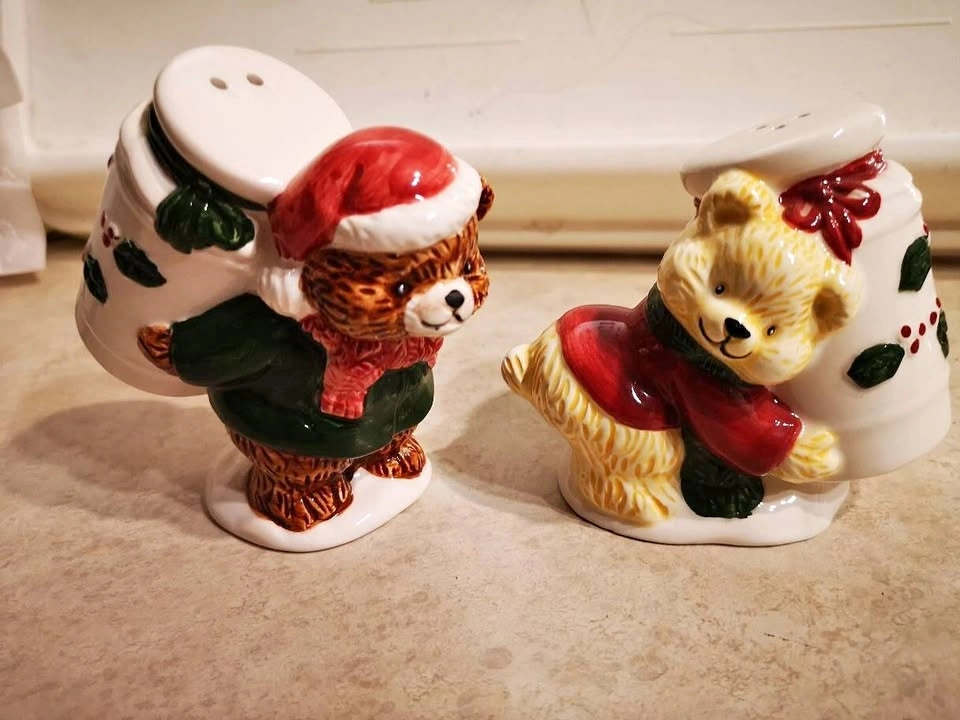 Christmas Teddy Bears Salt Pepper Shakers Ceramic