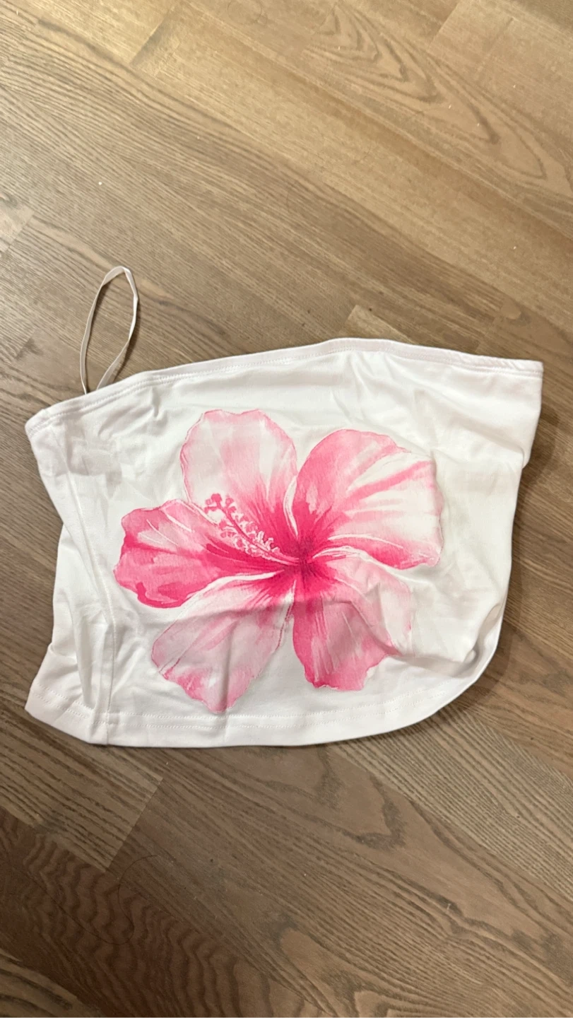 Selling a cute white tube top with a pink flower design! It's in Like New condition