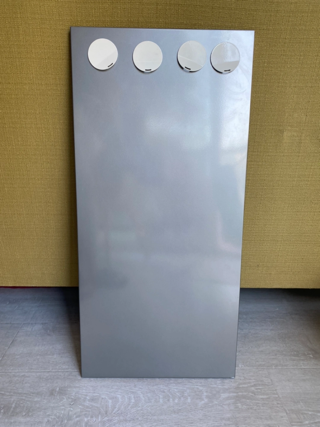 Metal board for posting notes, etc. Comes with four magnets.