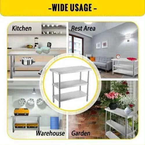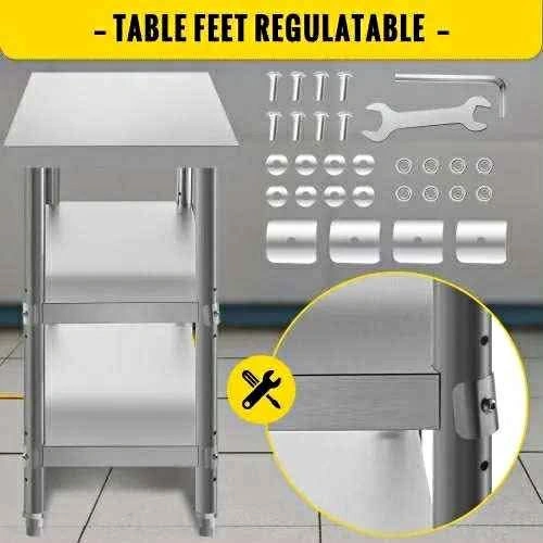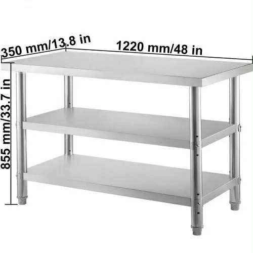 2948x14x33 in Commercial Stainless Steel Table, 2 Adjustable Undershelf BBQ Prep Table, Heavy Duty Kitchen Work Table, for Garage, Home, Warehouse, and Kitchen Silver. Let me know if you're interested!