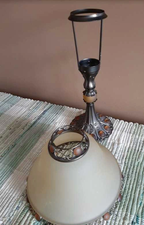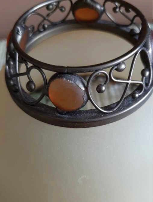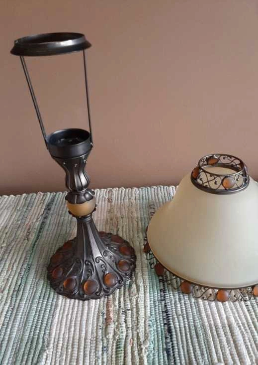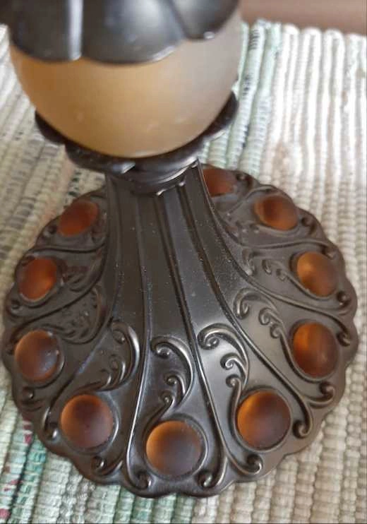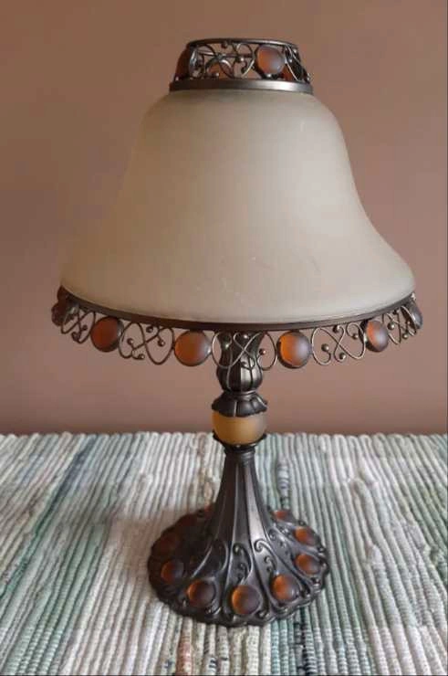 Add a touch of vintage elegance to your space with this stunning table Tealight lamp! Featuring a frosted glass shade adorned with amber-coloured accents and a beautifully detailed metal base, this lamp exudes a warm and inviting glow. This tea lamp is in good condition. It has a lovely design, perfect for adding a cozy and stylish touch to any room. * Frosted glass shade with amber accents * Intricate metal base design * Perfect for bedside tables, desks, or living rooms I've priced it at $70.00. If this ad is still up, the lamp is available! Don't miss out on the opportunity to brighten up your home with this charming piece.