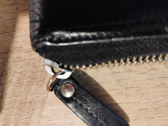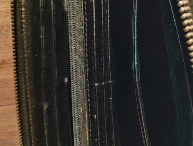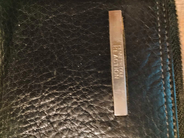 Check out this Kenneth Cole Reaction wallet, perfect for keeping your essentials organized. This wallet has seen some use, which is reflected in its price, but it still has plenty of life left. It features a zippered closure, multiple card slots, and a sleek design.