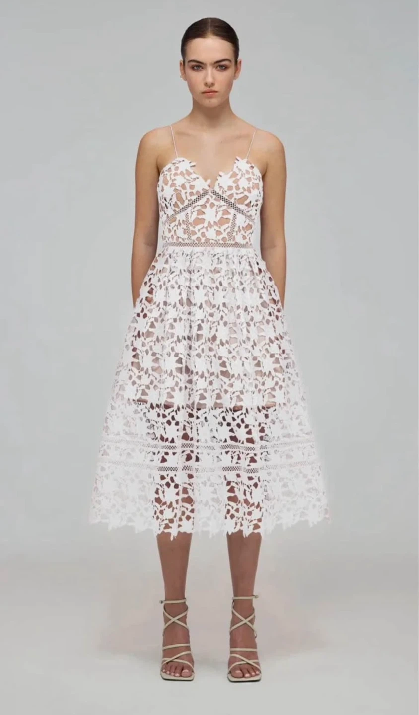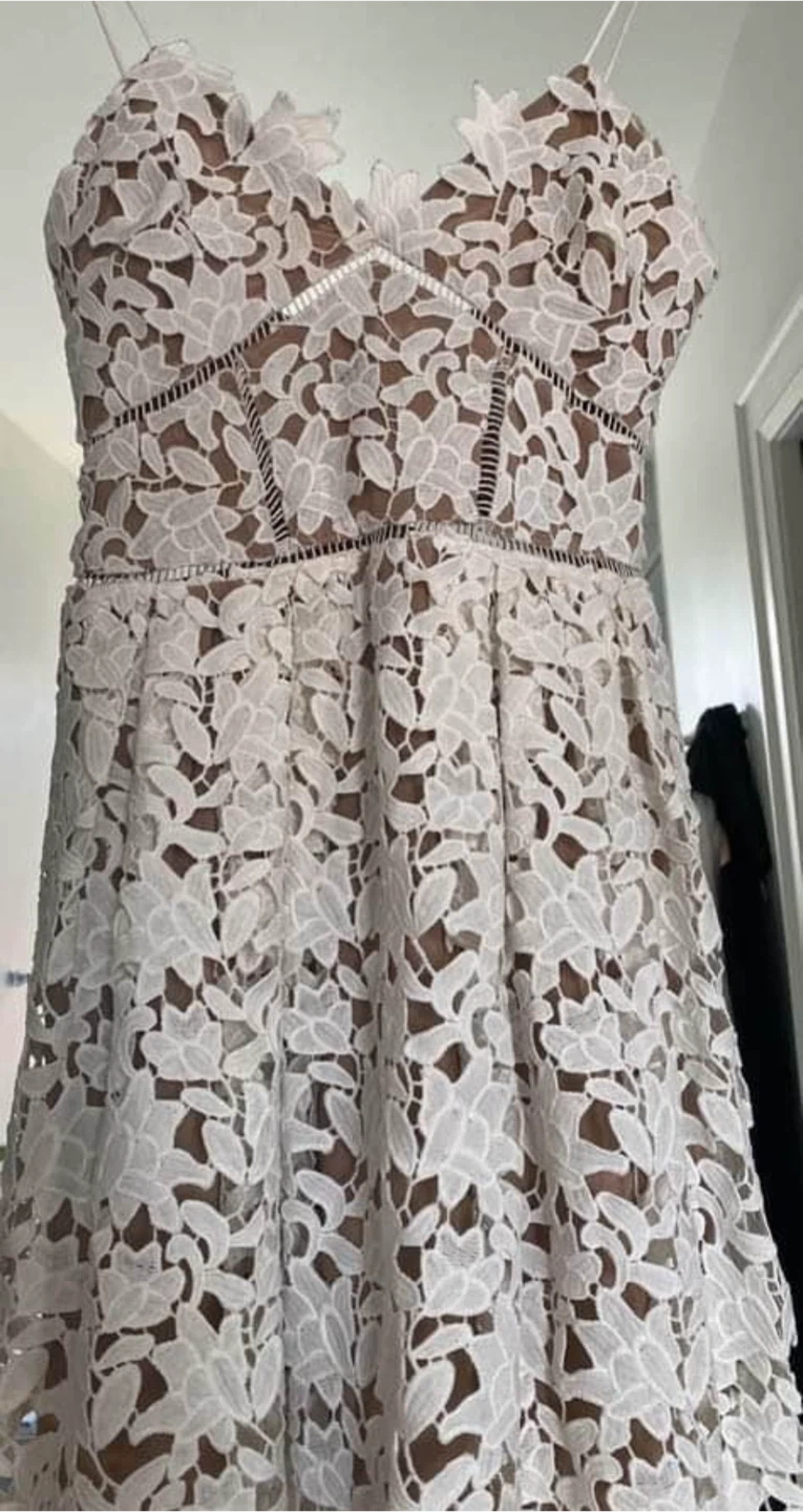 Selling Self Portrait Azaelea white lace dress. It's in great condition and perfect for a special occasion! Length: 116cm (45.7 inches) Bust: 79cm (31.1 inches) Waist: 64cm (25.2 inches) UK 6