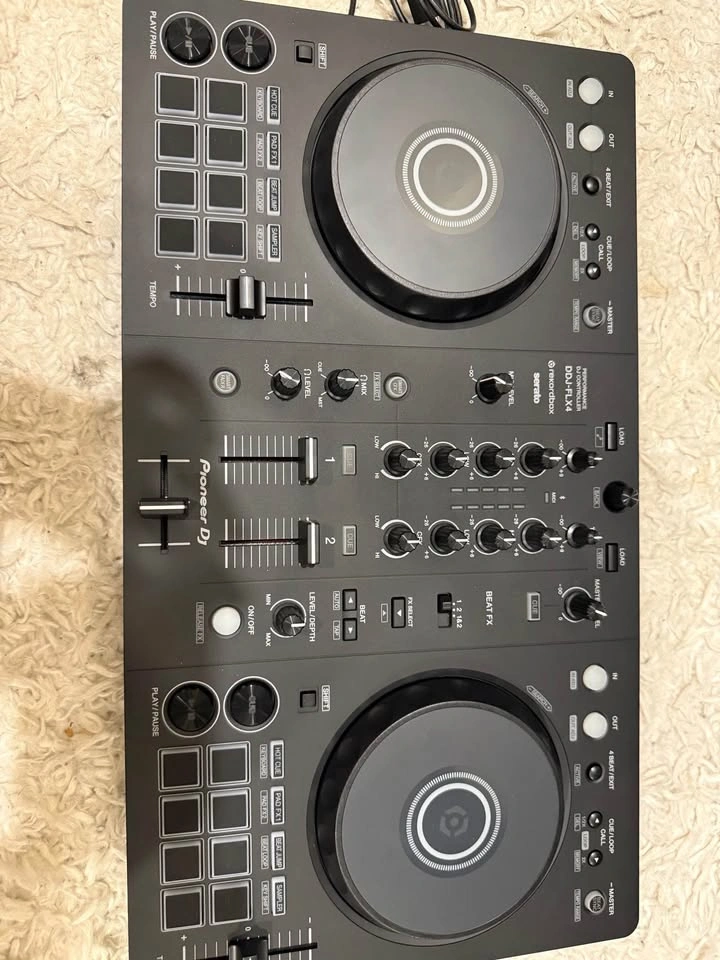 Dji Flx-4 used twice only freshly manufactured unti in Feb-2025( see on picture sticker) brand new condition Rekordbox and Serato compatibility. You can use the DJ software rekordbox or Serato DJ Lite for free by connecting your PC/Mac to the DDJ-FLX4 to complete your DJ setup. And if you want to upgrade to Serato DJ Pro, you can buy a license or subscription for the premium version of the software. Multi-device support. Whether you want to connect to a PC, Mac, iPhone, iPad, or an Android phone or tablet. I already put way more low and firm non negotiable price for this, you can share your nearby intersection or address I will see if I can near I will come to you, thanks