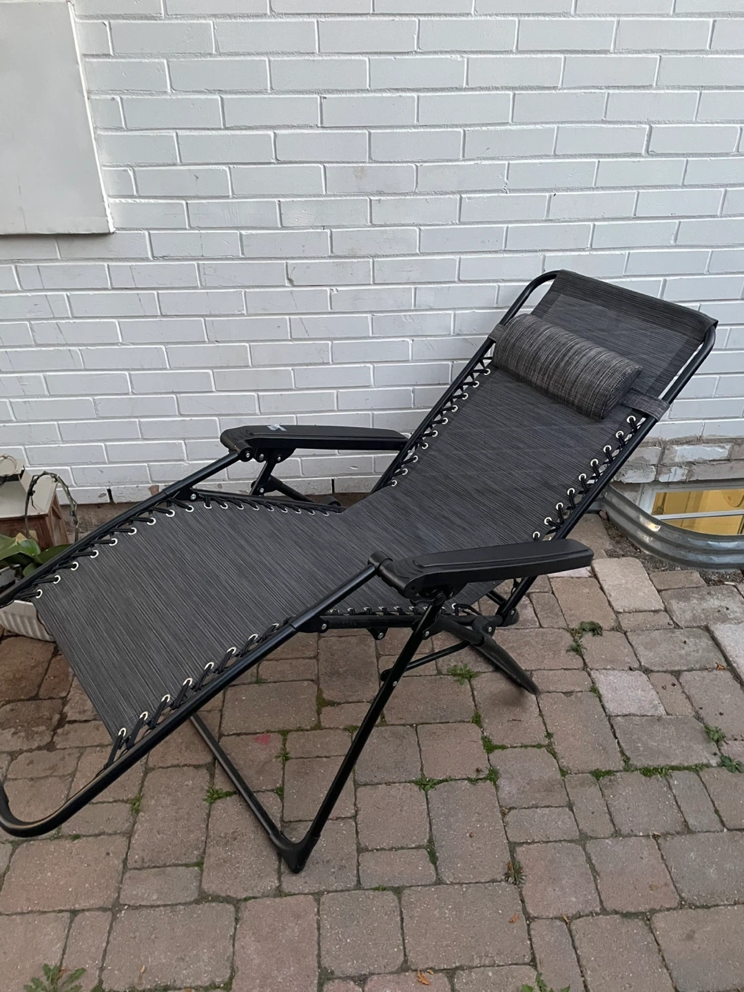 Looking to sell my zero gravity lounge chair. Perfect for relaxing in the backyard or on the patio. The chair is black and comfortable. It's also foldable for easy storage. 📍Dundas & Winston Churchill