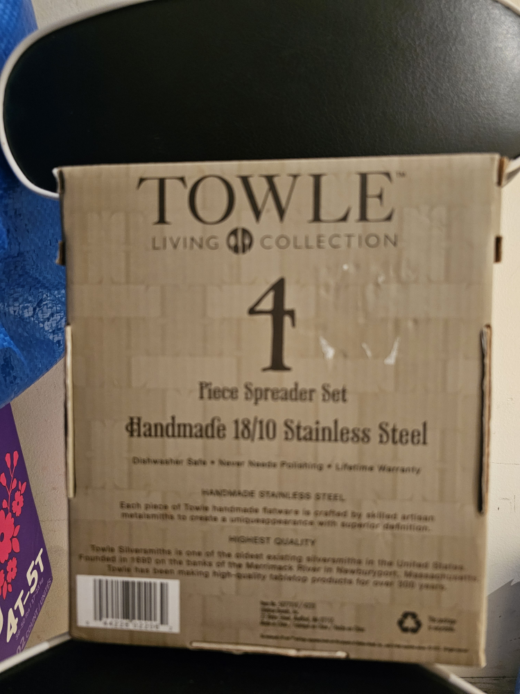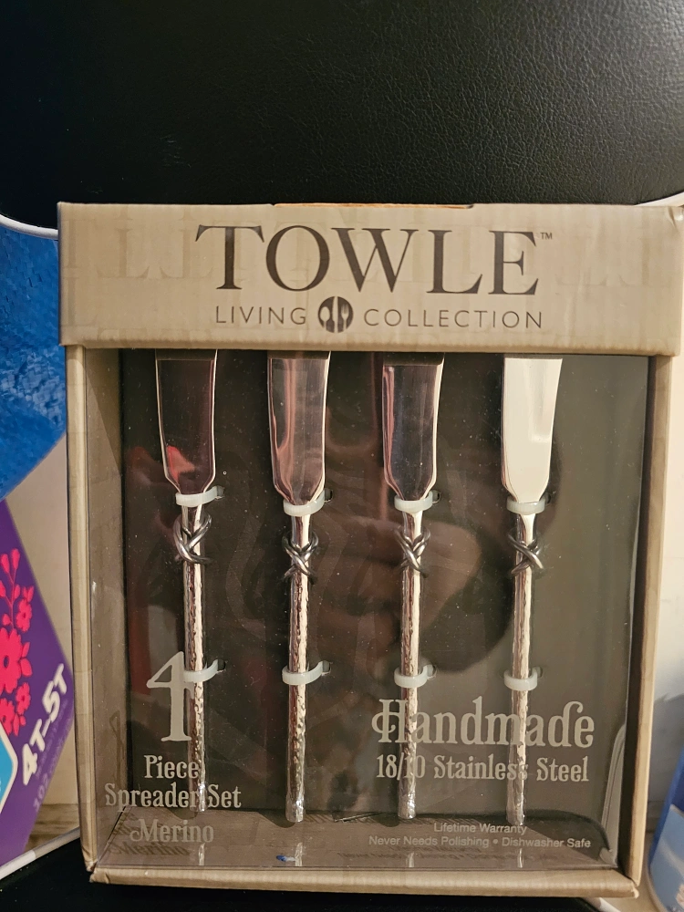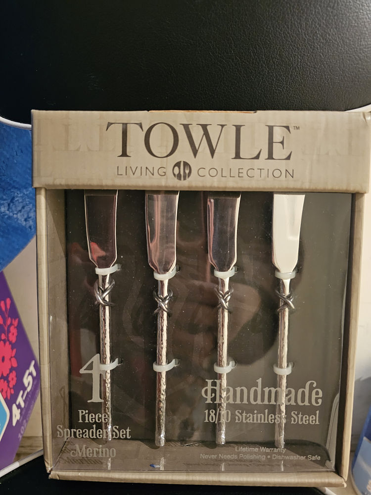 Selling a brand new Towle Living Collection 4-Piece Spreader Set! It's handmade with 18/10 stainless steel. The set is dishwasher safe and never needs polishing. Comes in the original box
