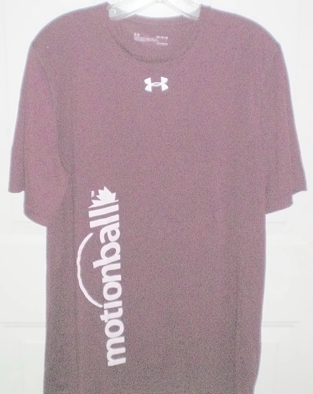 10Under Armour Heatgear T Shirt Medium Motionball - Maroon loose fitted style with screen printed Motionball on front and Under Armour logo on front and back neck - 92% polyester 8% elastane - Material wicks sweat & dries really fast - Anti-odor technology prevents the growth of odor-causing microbes - Screenprinted Under Armour logo on arm and back - Condition: New Great to play in or support your favourite player or team