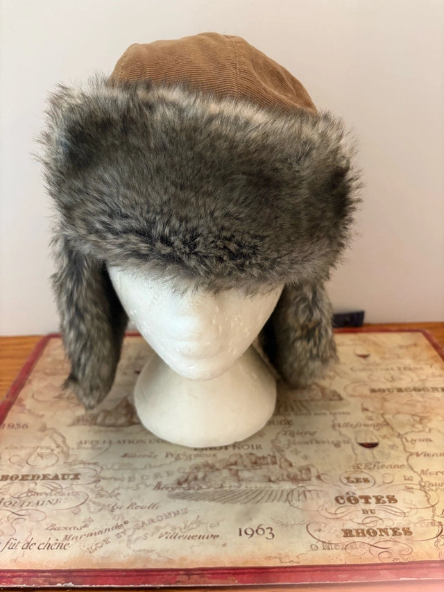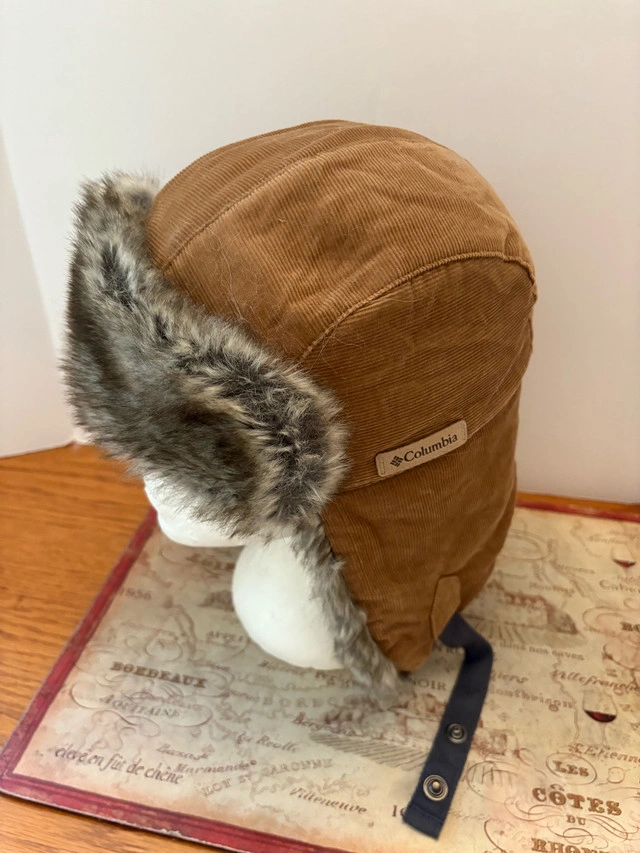 Stay warm and stylish with this Columbia winter hat, featuring a corduroy exterior and faux fur trim, perfect for braving the Canadian elements. This cozy hat is in good condition and ready for its next adventure. * Brand: Columbia * Material: Corduroy and Faux Fur * Size: One Size Fits All Looking for a hat that’s seen a snowflake or two but still has plenty of warmth to give? Then this might be the hat for you!