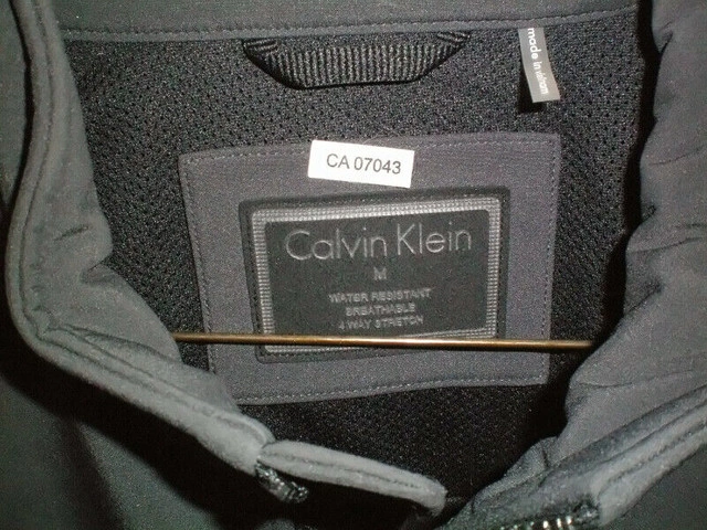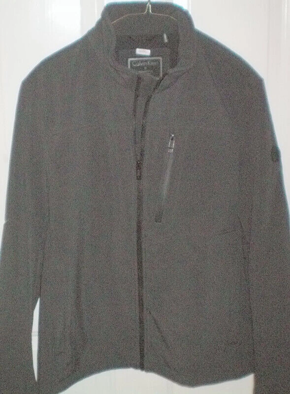 Calvin Klein Men’s 4-Way Stretch Jacket Size M - Breathable, water and wind resistant - Color: Charcoal Grey - Face: 94% Polyester, 6% Spandex; Lining 100% Polyester - Top stitched - 4-way stretch shell, interior and exterior pockets - Machine Wash - Zip front, open cuffs, stand up collar - 2 slash pockets, 1 angled pocket on chest and 1 interior pocket - Rubber CK logo patch on left sleeve Casual & leisurely jacket that will get you noticed, and you’ll love. Cashless payment accepted. For sale by owner. Curbside pick up available.