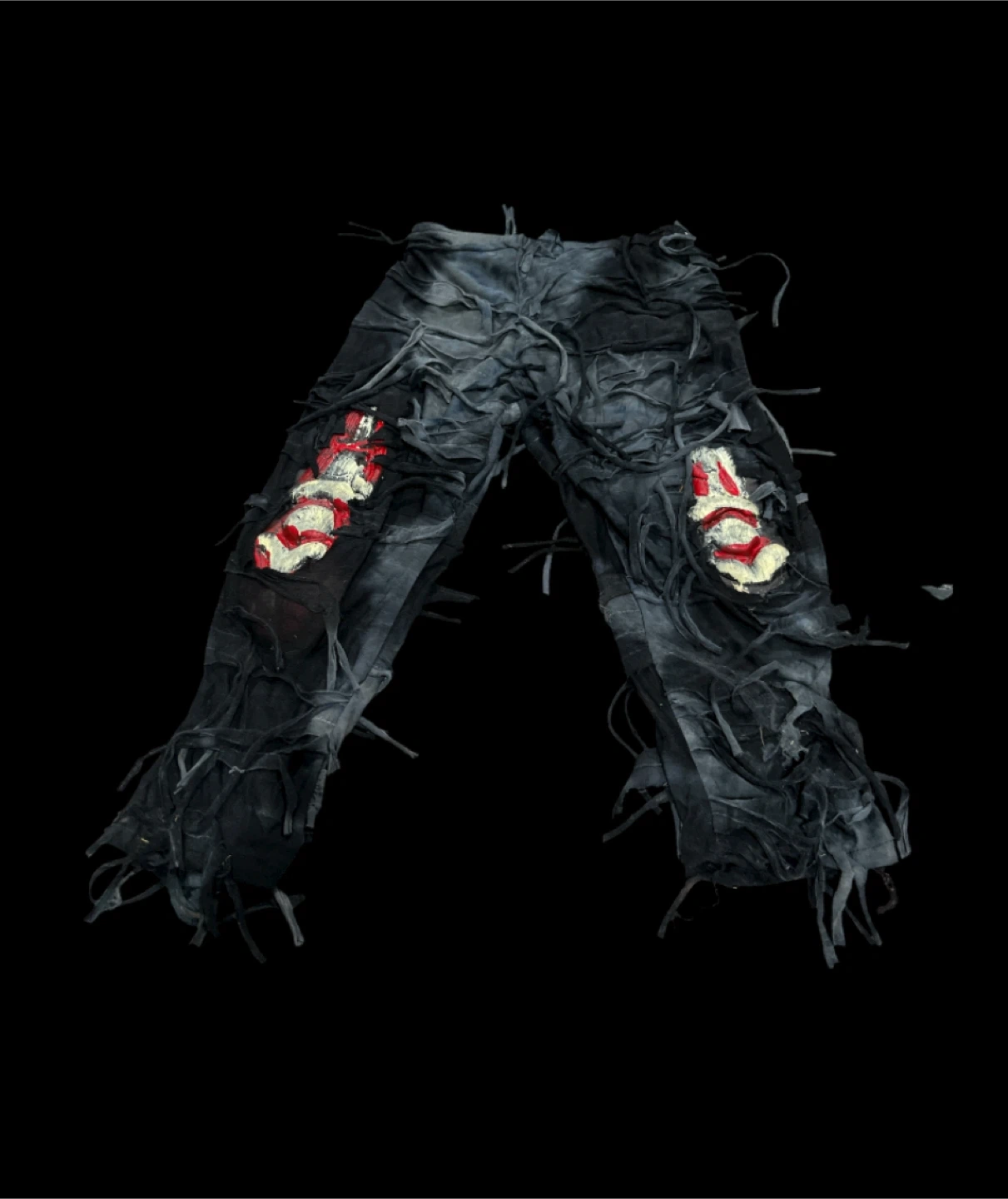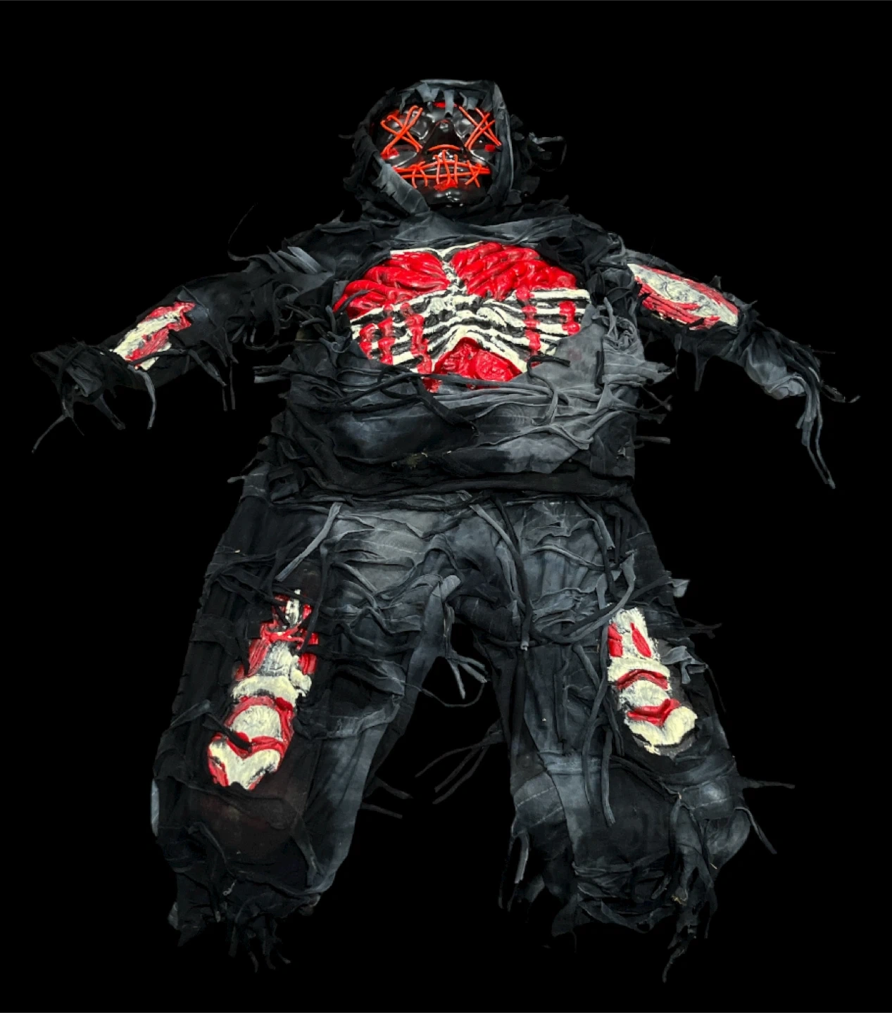 Selling a used Halloween costume. It has a ripped and tattered look with red and white accents. Good for a spooky vibe!