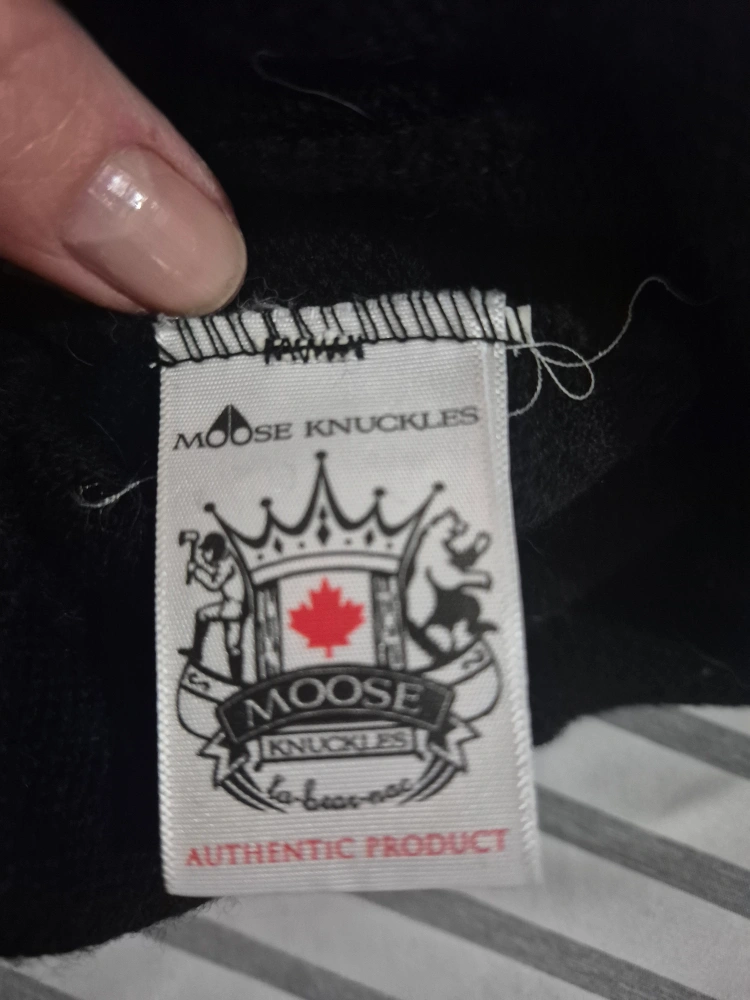 Selling a Moose Knuckles toque in black! It features a cute white pom pom on top. Great for keeping warm during the Canadian winter!