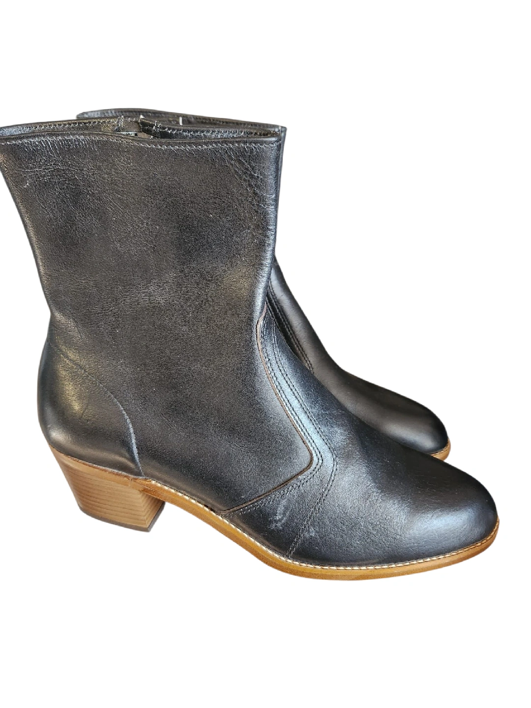 Selling a pair of black leather ankle boots. They have a bit of wear, as shown in the pictures. These are a stylish and comfortable option for everyday wear!