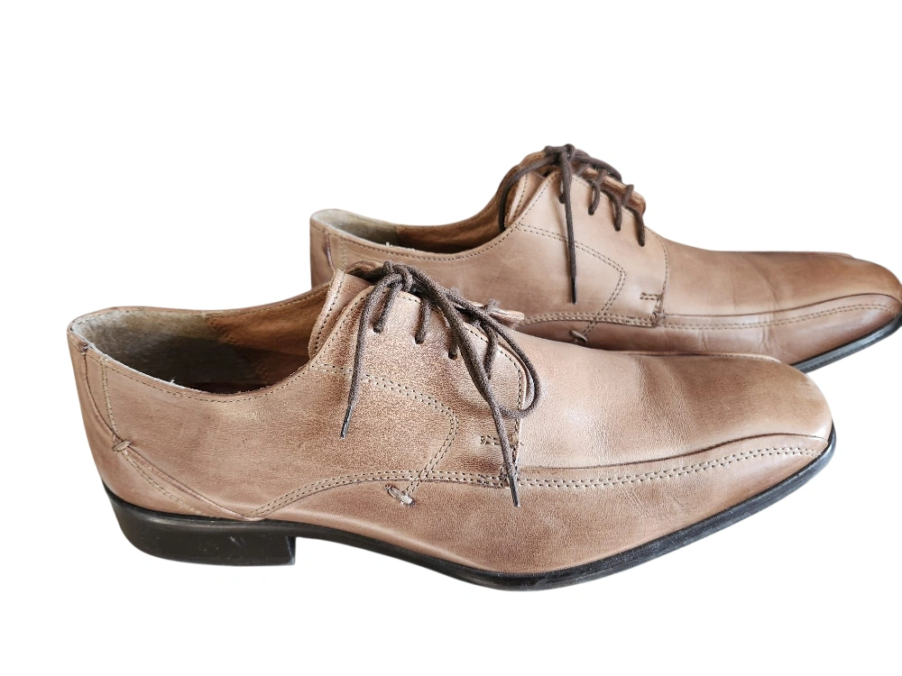 Selling a pair of leather dress shoes. They are in used condition with some wear on the soles. The size is marked as 43 (EU). Great for a semi-formal occasion!