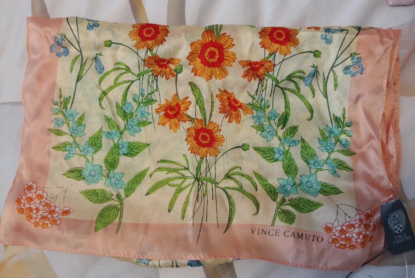 Selling a beautiful brand new Vince Camuto scarf with a vibrant floral pattern! The scarf is made from a soft blend of 56% modal and 44% silk, making it lightweight and comfortable to wear. New with tag.
