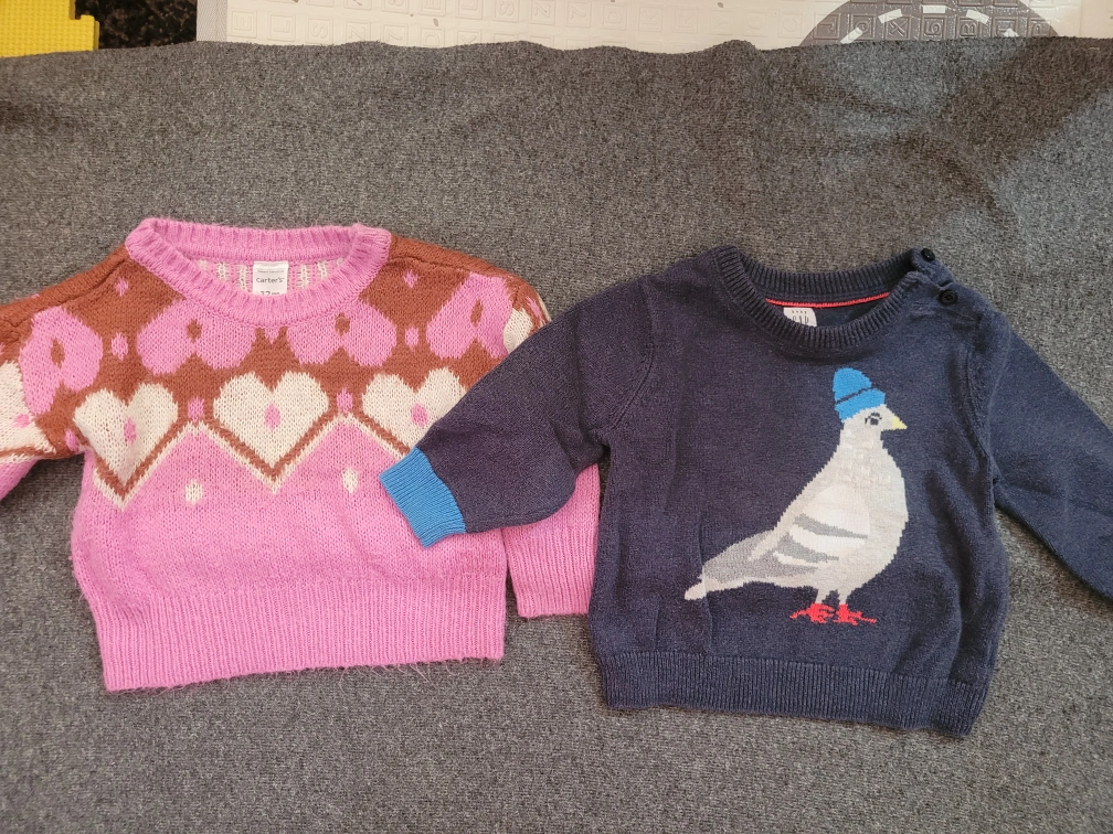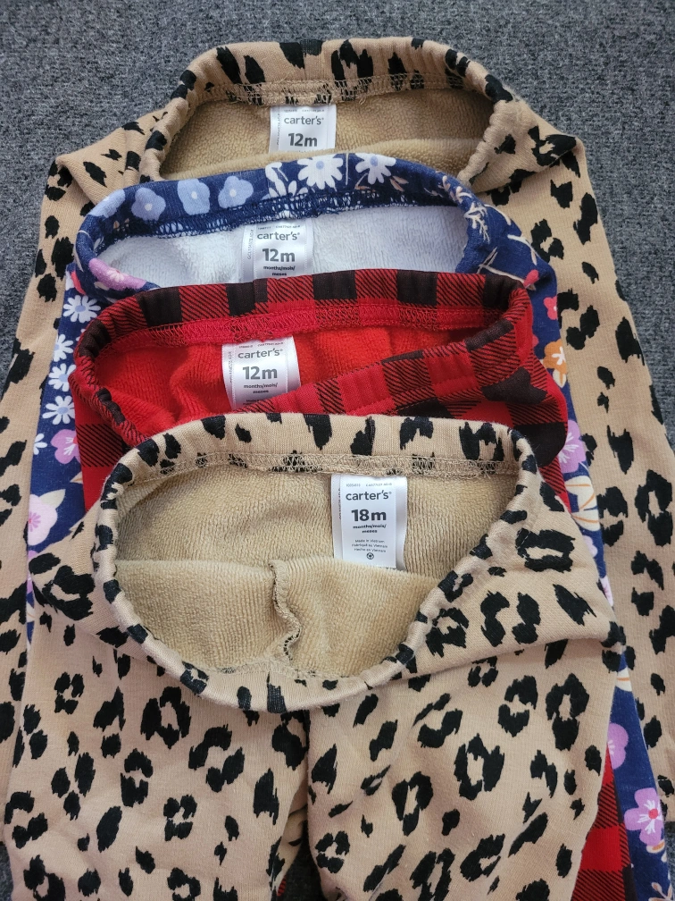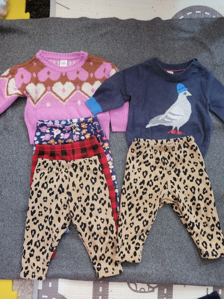 Selling a bundle of baby clothes! Includes two sweaters, one from Carter's and one from Gap, both 12m.Also included are four pairs of leggings with fleece linings. three size 12 months from Carter's, and one size 18 months from Carter's