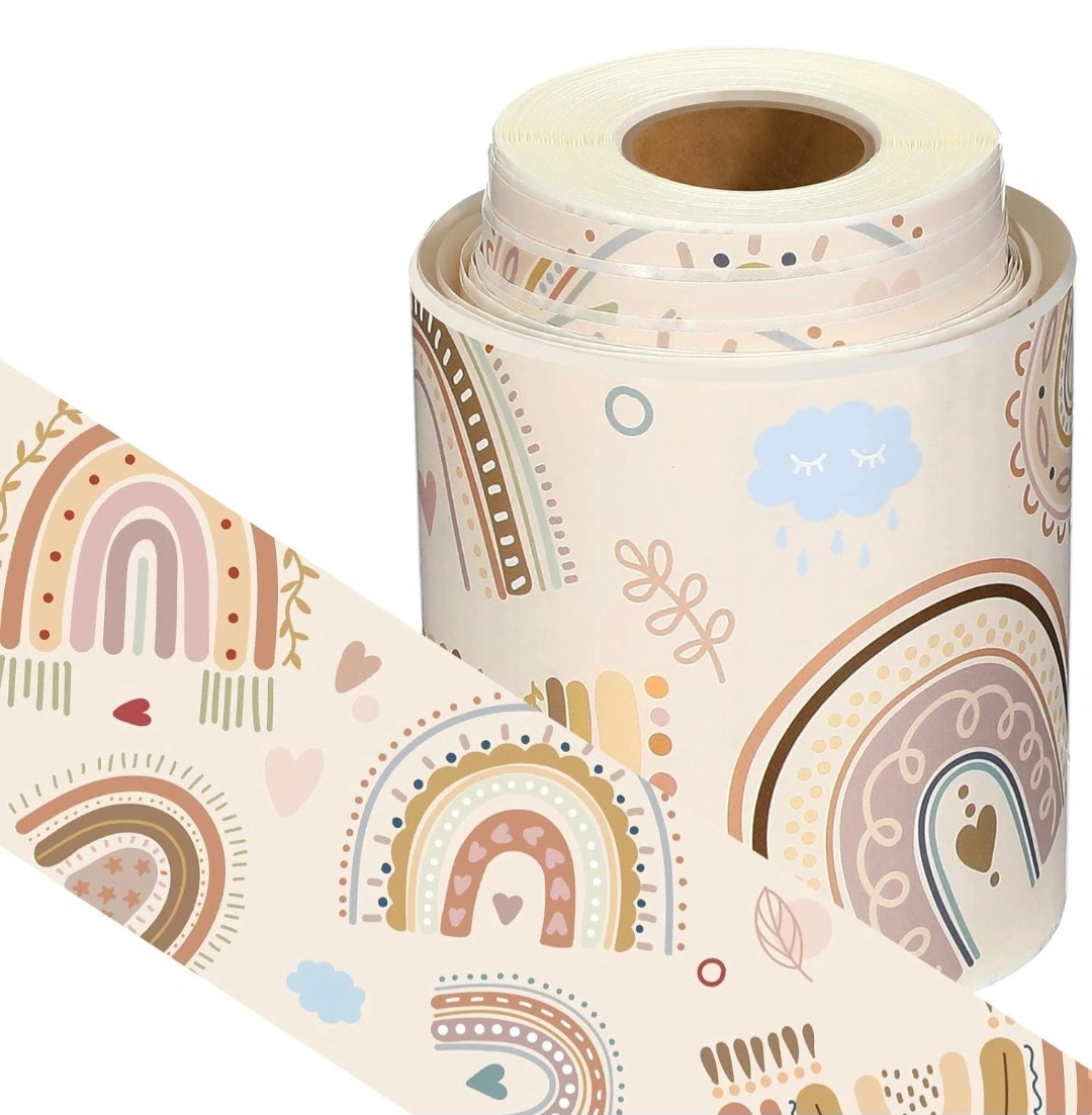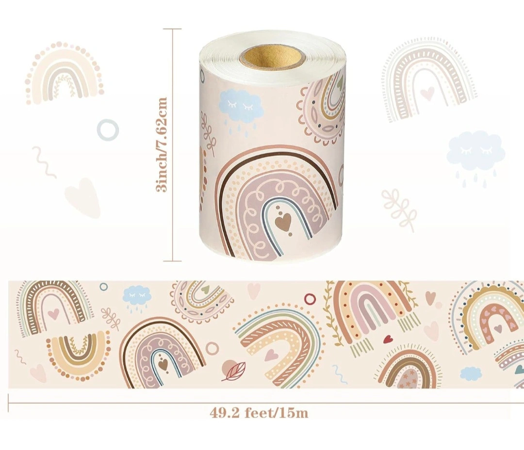 70Add a touch of whimsy to any room with this adorable rainbow border roll! Easy to apply with its peel-and-stick design! 3"x49.2ft. Have multiple rolls available.