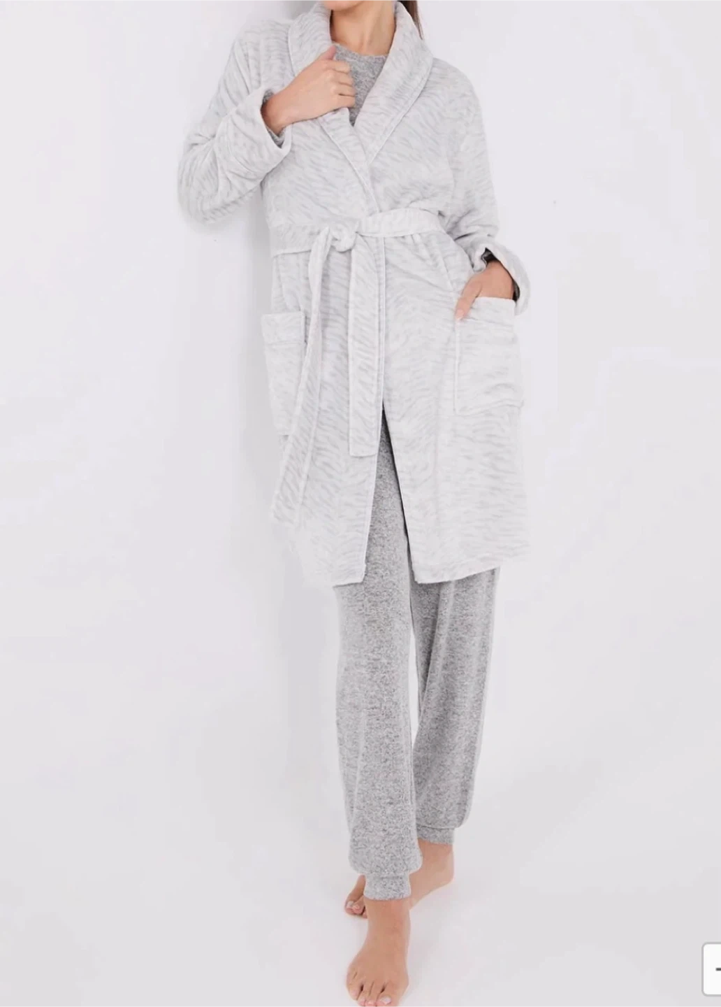 Selling a super comfy robe! Size - small It's in great condition and perfect for lounging around the house. Runs until knee It's a soft, light grey colour with a tie waist and handy pockets. Perfect for chilly mornings! Bought it last Christmas as a gift but never ended up gifting Price is firm Cash only Pick up location close to Lansdowne ttc