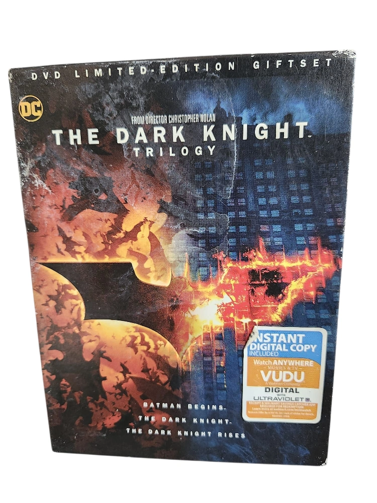 Selling The Dark Knight Trilogy DVD Limited Edition Giftset. Includes Batman Begins, The Dark Knight, and The Dark Knight Rises. It also comes with an instant digital copy. Watch anywhere with Movies & VUDU Digital.