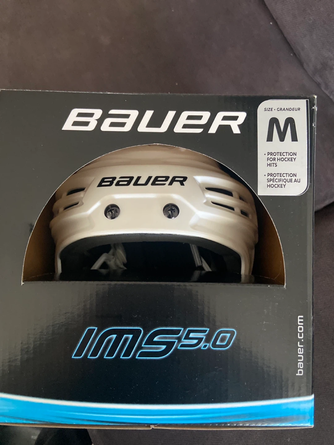 Selling a Bauer IMS 5.0 hockey helmet in size medium. It's in great condition and comes with the original box. This helmet offers protection for hockey, so you can stay safe on the ice! Perfect for anyone looking for reliable headgear for their next game or practice