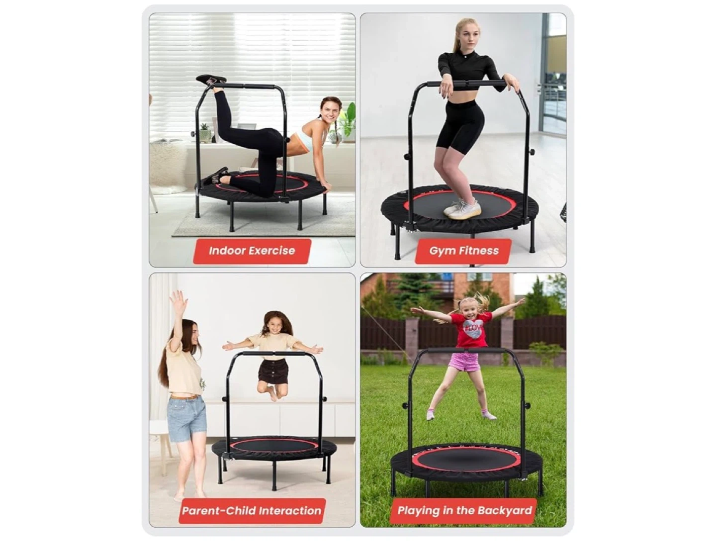 Foldable Rebounder Fitness Trampoline with Handle