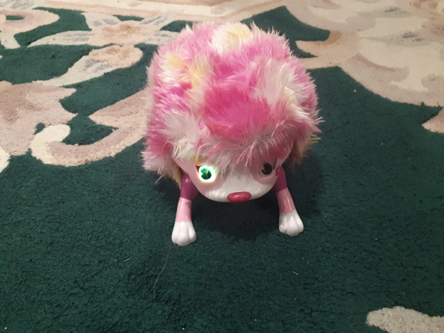 10Electronic hedgehog from Zoomer. One eye doesn't light up. Takes 4 AAA batteries.