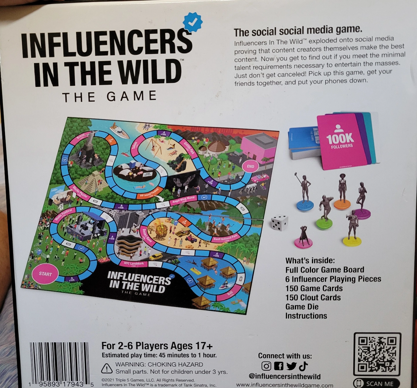 Selling the board game Influencers In The Wild. It's for 2-6 players, ages 17+.