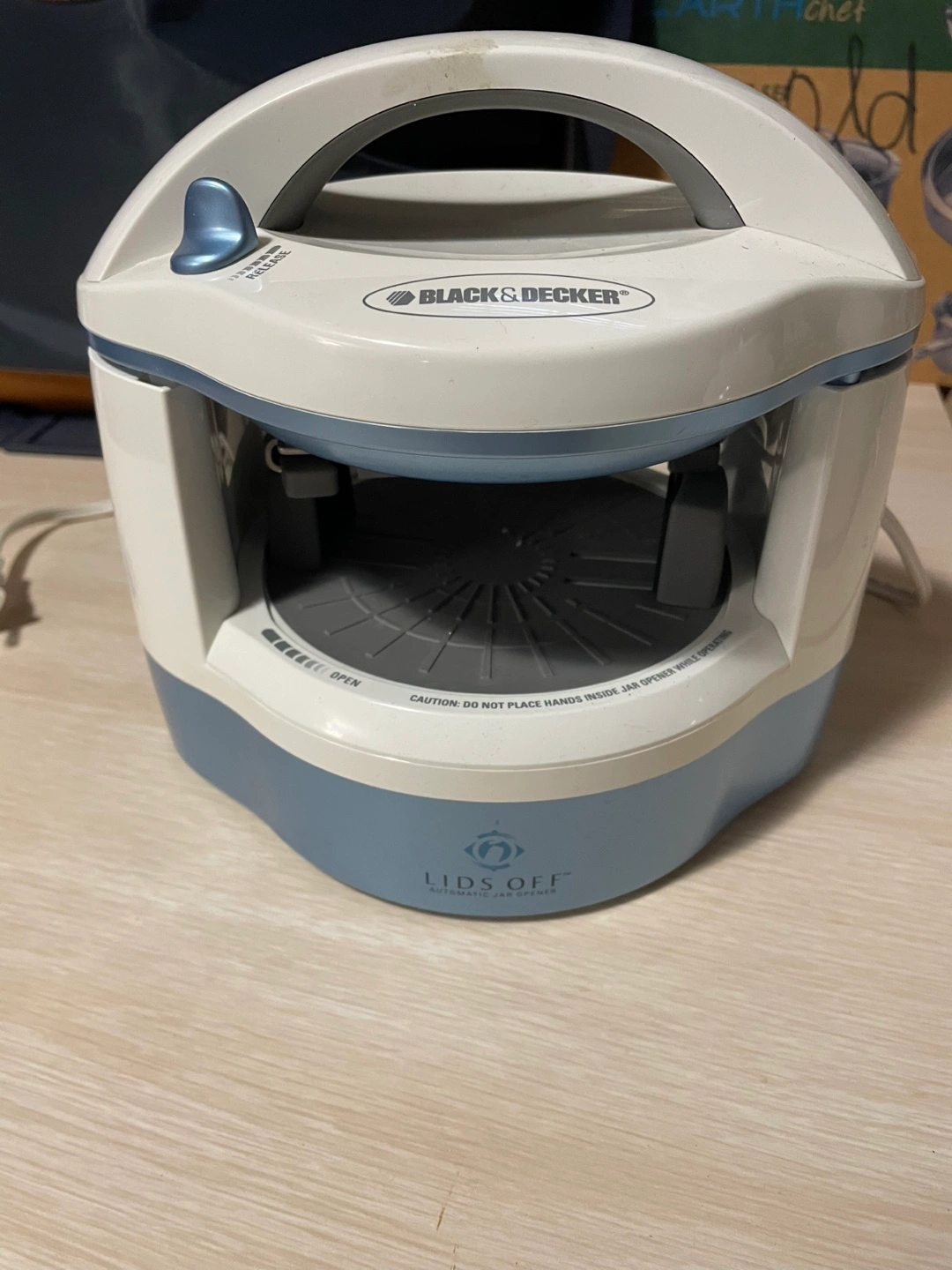 Selling a Black & Decker Lids Off jar opener. It's in great shape and ready to help you open those stubborn jars with ease! Perfect for anyone who struggles with opening jars or just wants a little extra help in the kitchen just press down opens any jar no matter how tight works awesome take only cash no e-transfers thank you