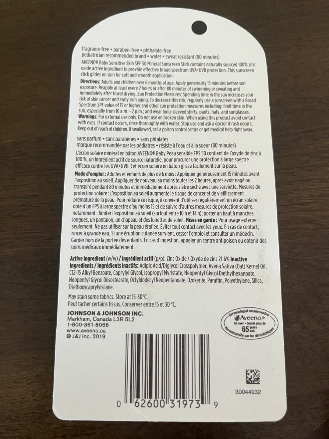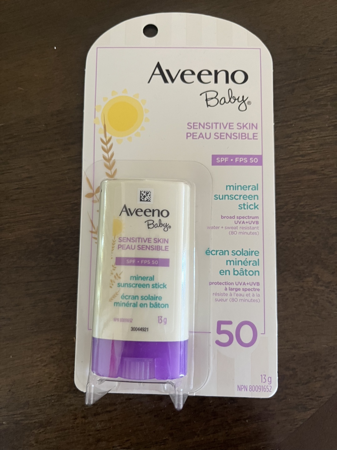 Brand new.Keep your little one protected with this Aveeno Baby Sensitive Skin SPF 50 mineral sunscreen stick! Expires December 2026.Cash only