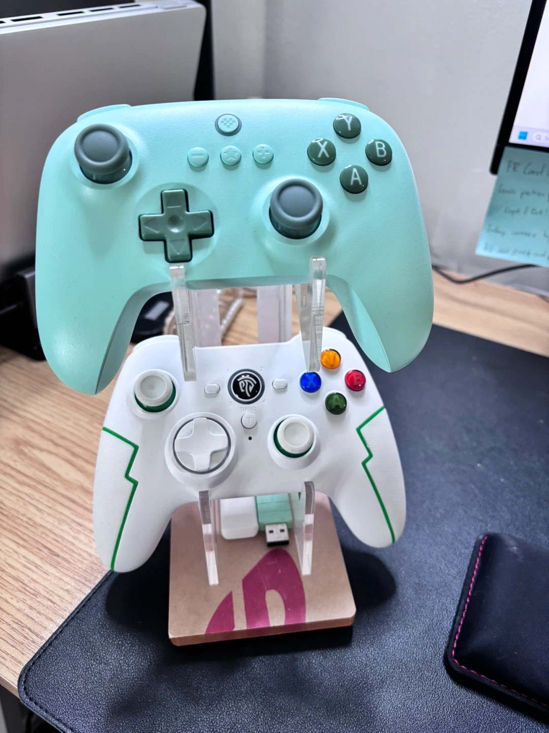 Selling two PDP gaming controllers! One is a lovely mint green and the other is white with green accents.