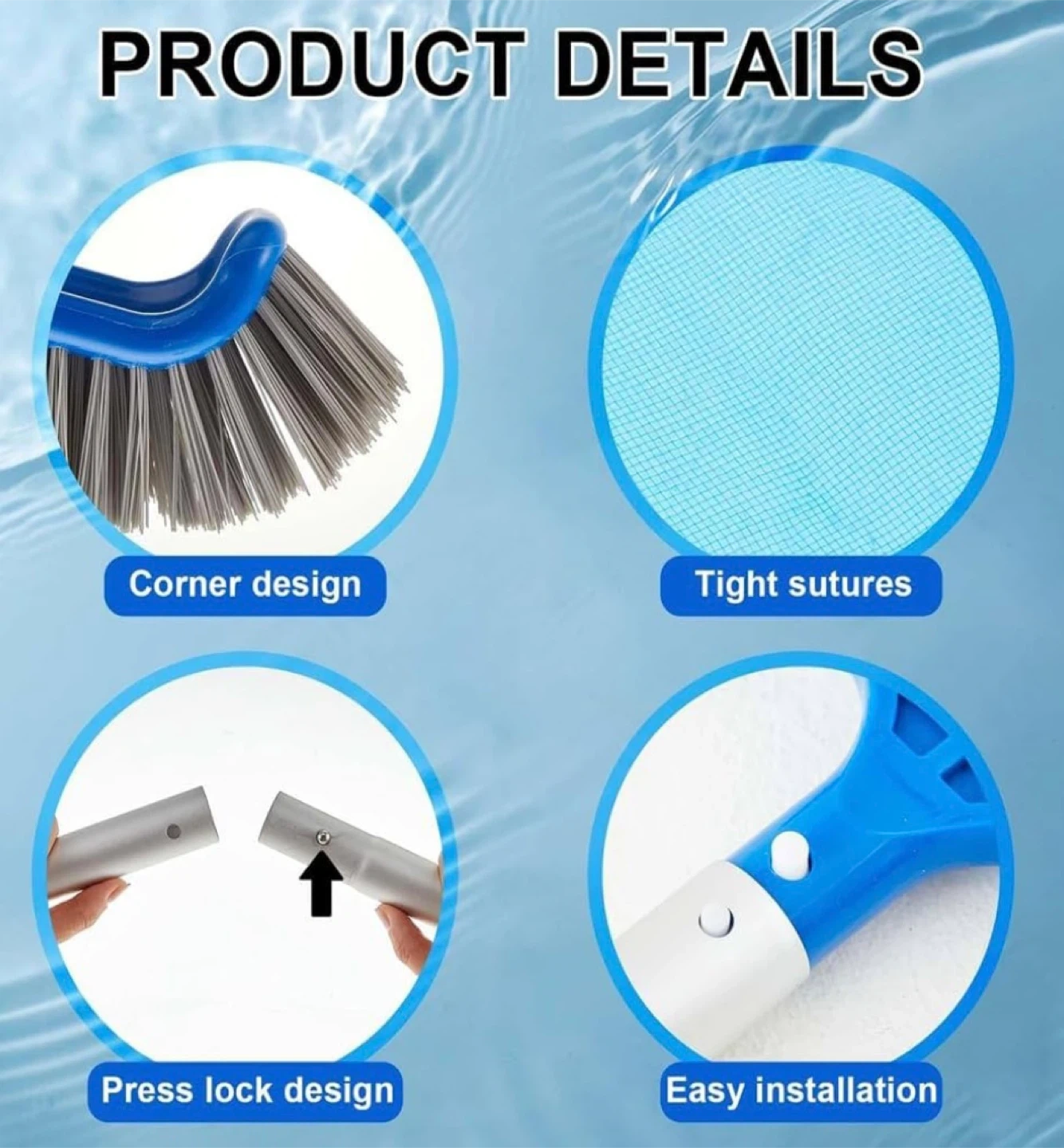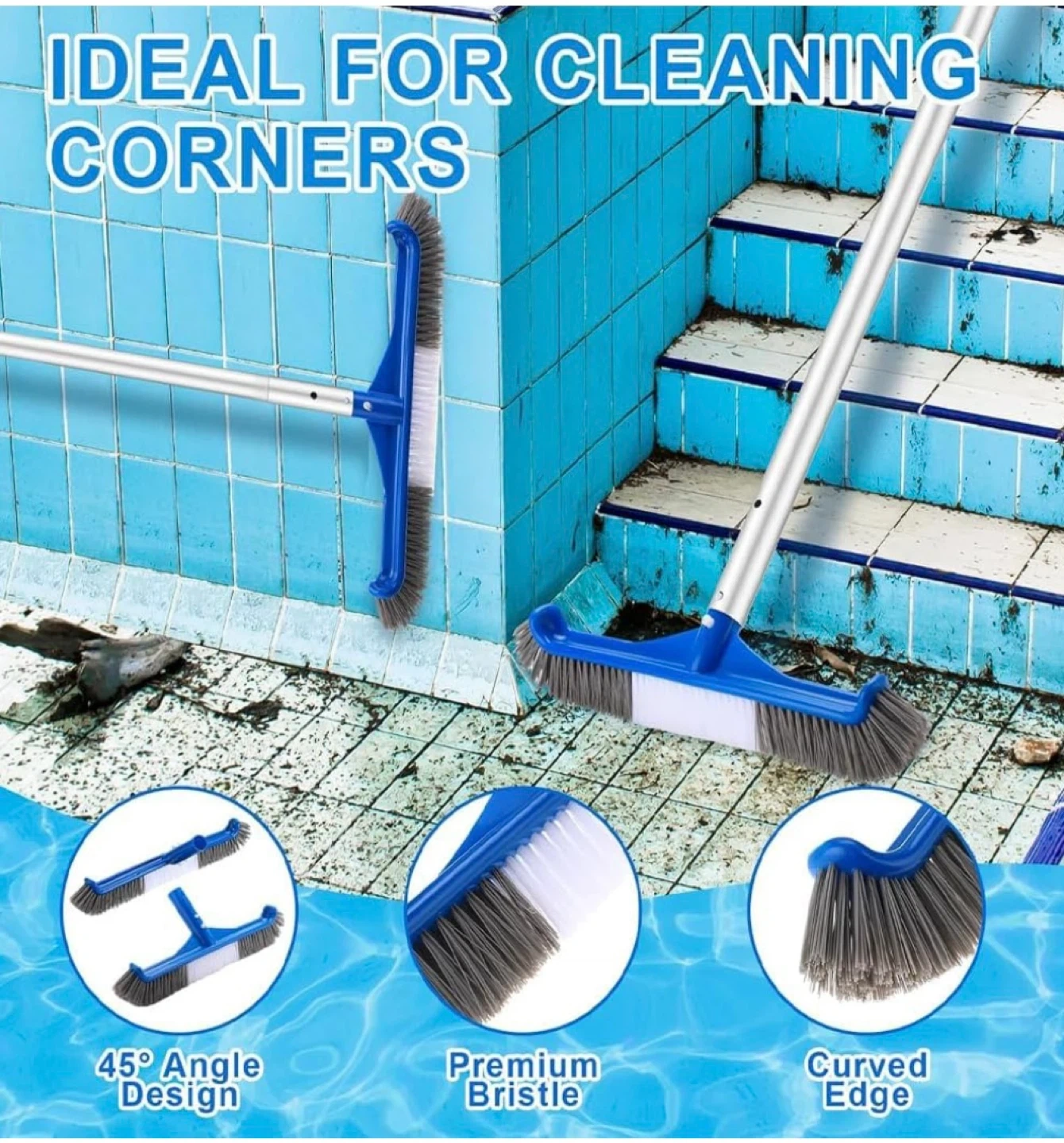 Get your pool sparkling clean with this handy cleaning brush for scrubbing the sides and bottom. The corner design and curved edge makes it ideal for cleaning corners. Easy installation with press lock design