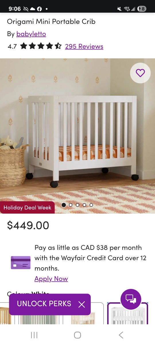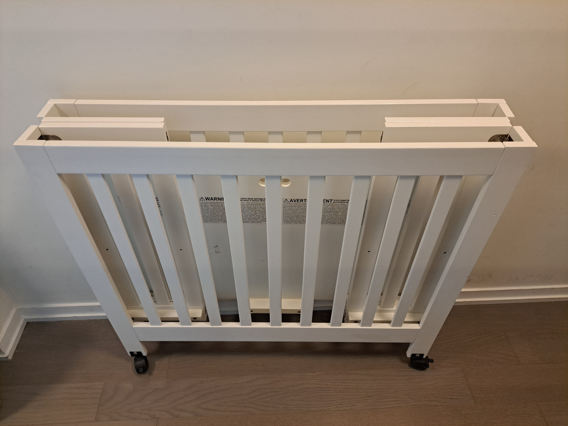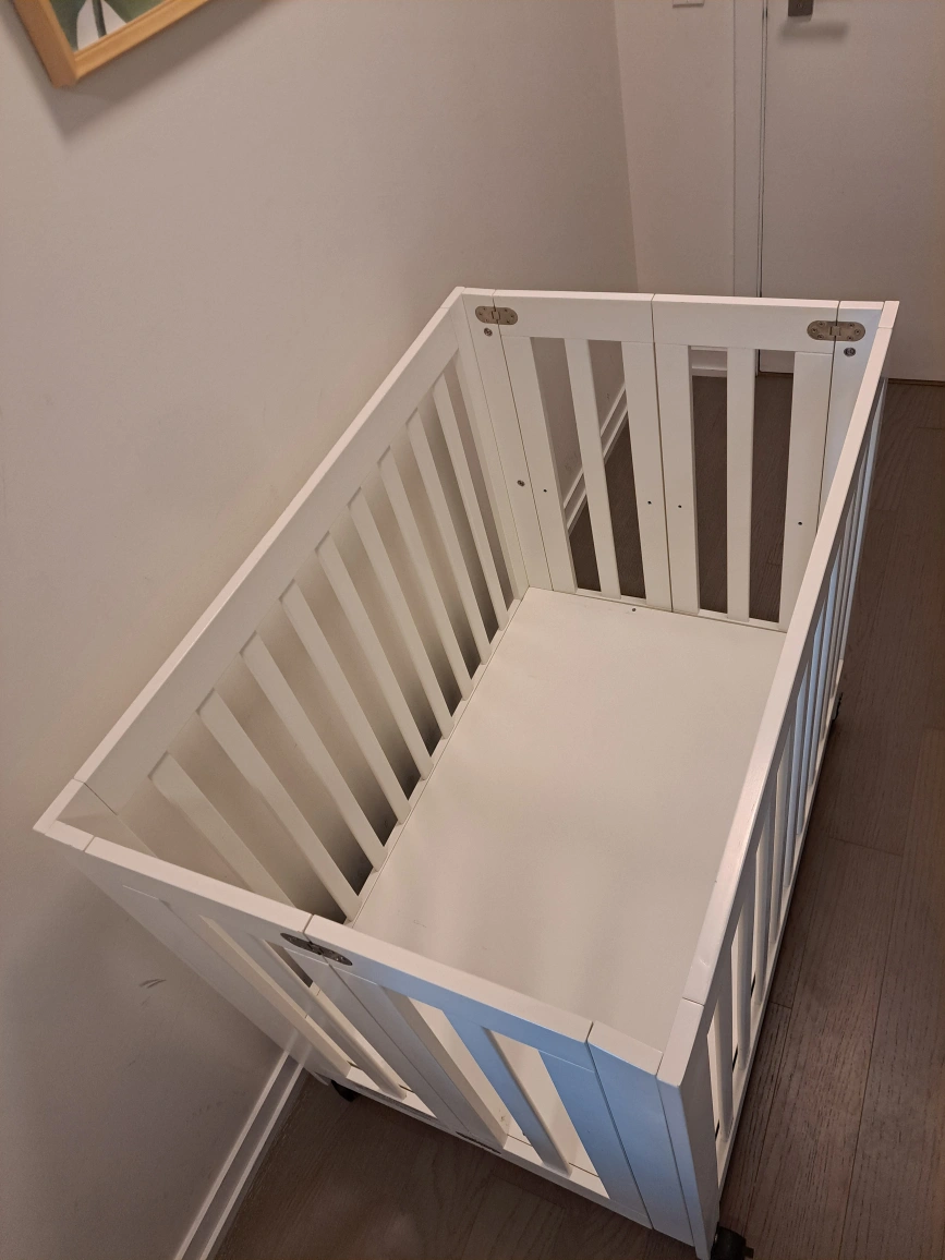 Selling a Babyletto Origami Mini Portable Crib in good condition. It's a great space-saving option and folds up easily for storage or travel. There are some minor signs of wear at the back wall of the crib as shown in the photos. Retails for $449.00.