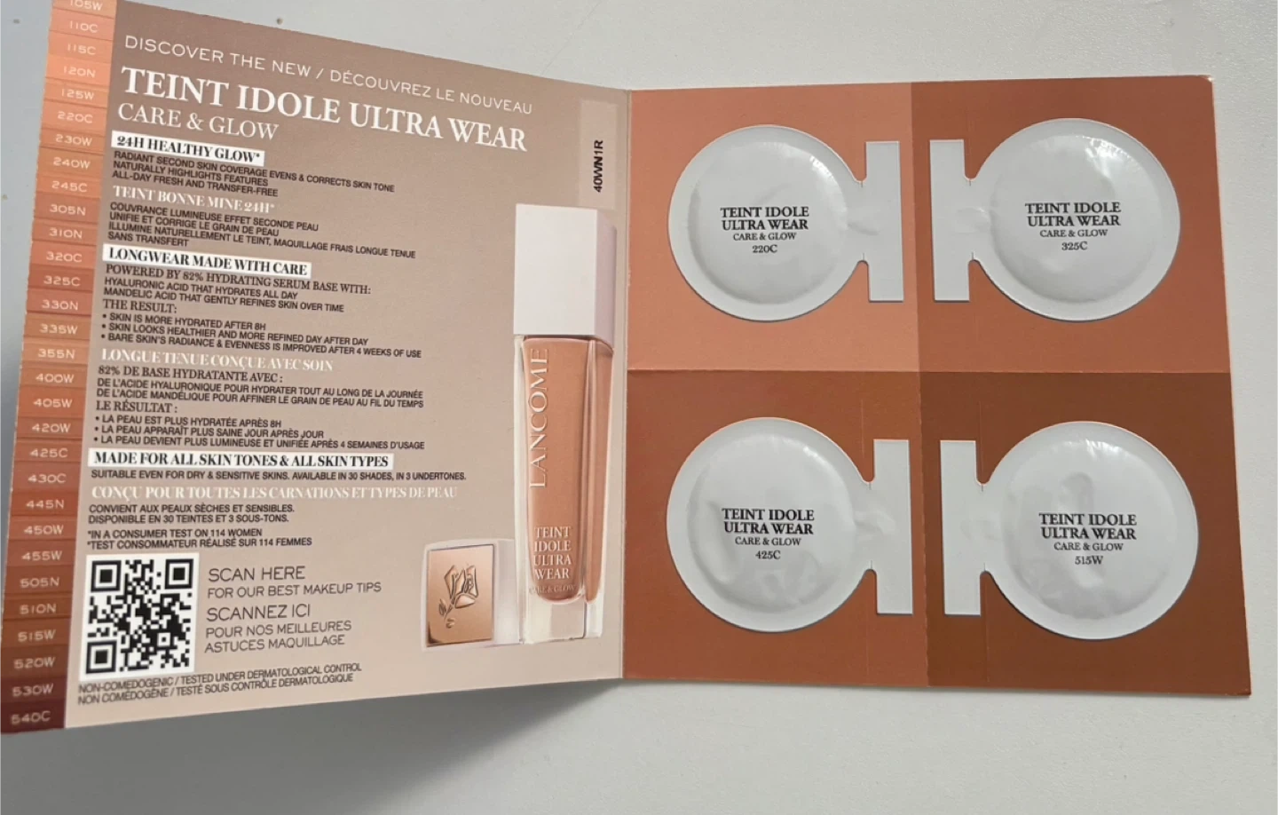 Selling brand new and sealed Lancôme skincare samples samples! Idole Care & Glow foundation in 4 shades 220c, 325 c, 42c and 515 W Advanced Génifique concentrate 1 ml Rénergie H.P.N. 300-Peptide Cream 1 ml Absolue The Serum 1 ml Perfect for trying out these products before committing to the full size! Price is firm Cash payment only