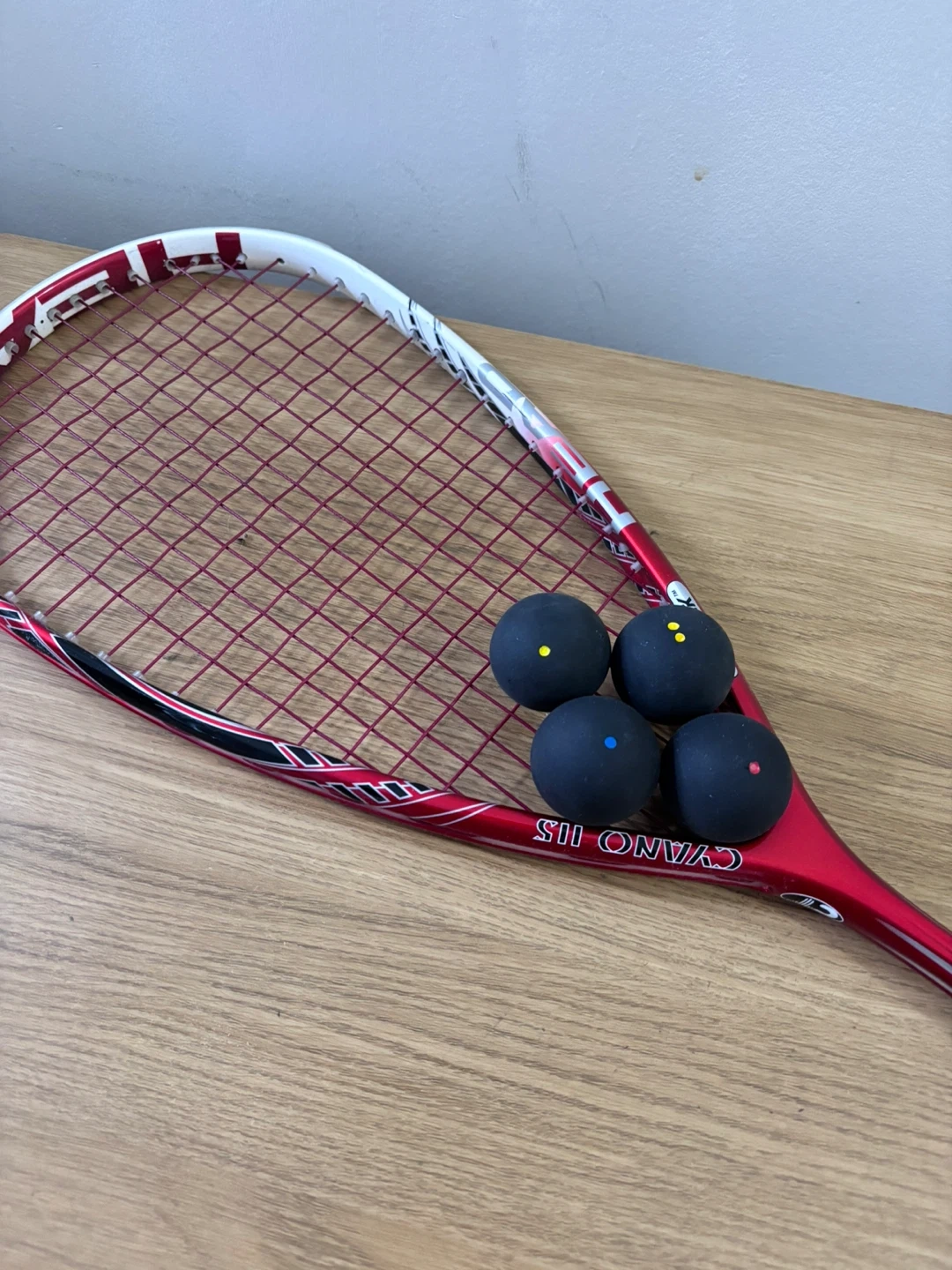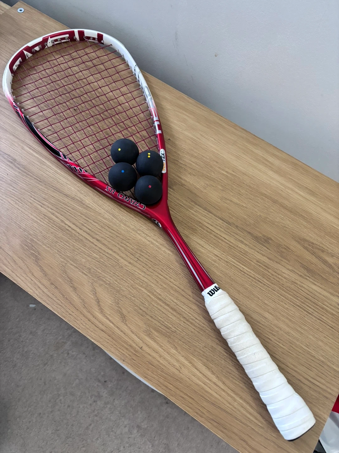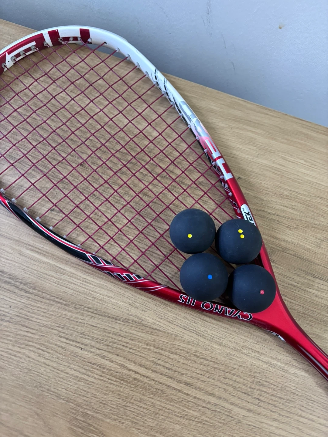 Selling a Wilson Head Cyano 115 squash racquet. It's in great shape, along with 4 different dots of squash balls. Bought it for $140 + $40 for balls.