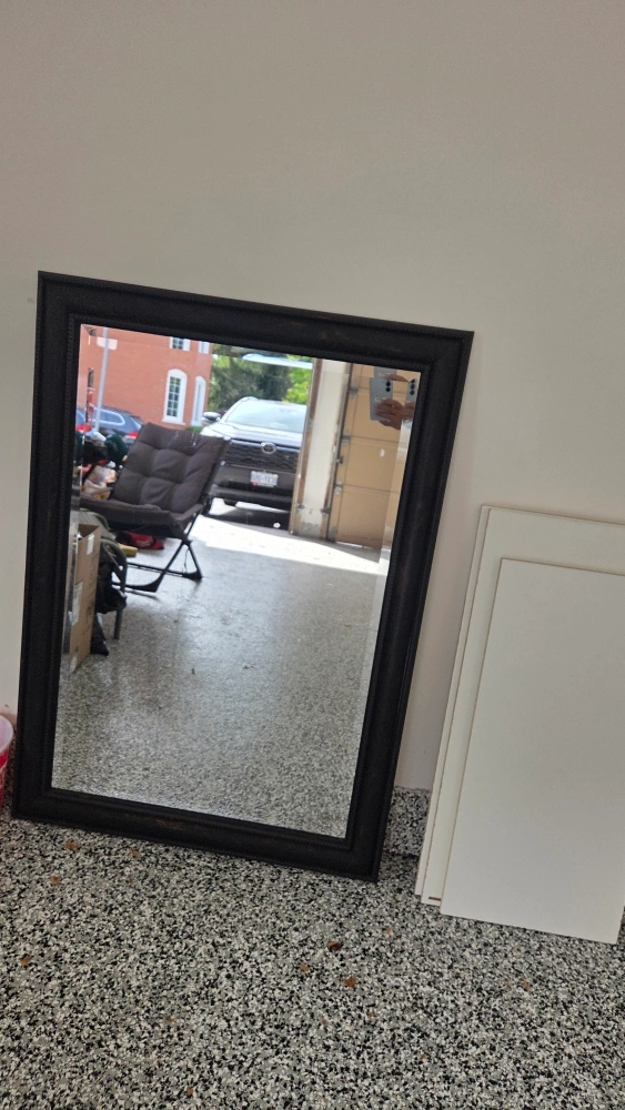 Selling a mirror with a black frame. It's in good condition and ready to add some style to your space