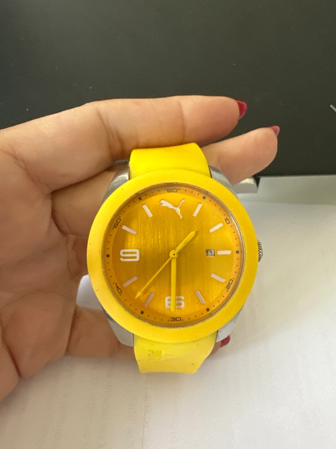Selling a vibrant yellow Puma watch! It's in great condition and ready to add a pop of colour to your wrist. Unisex. Needs new battery.