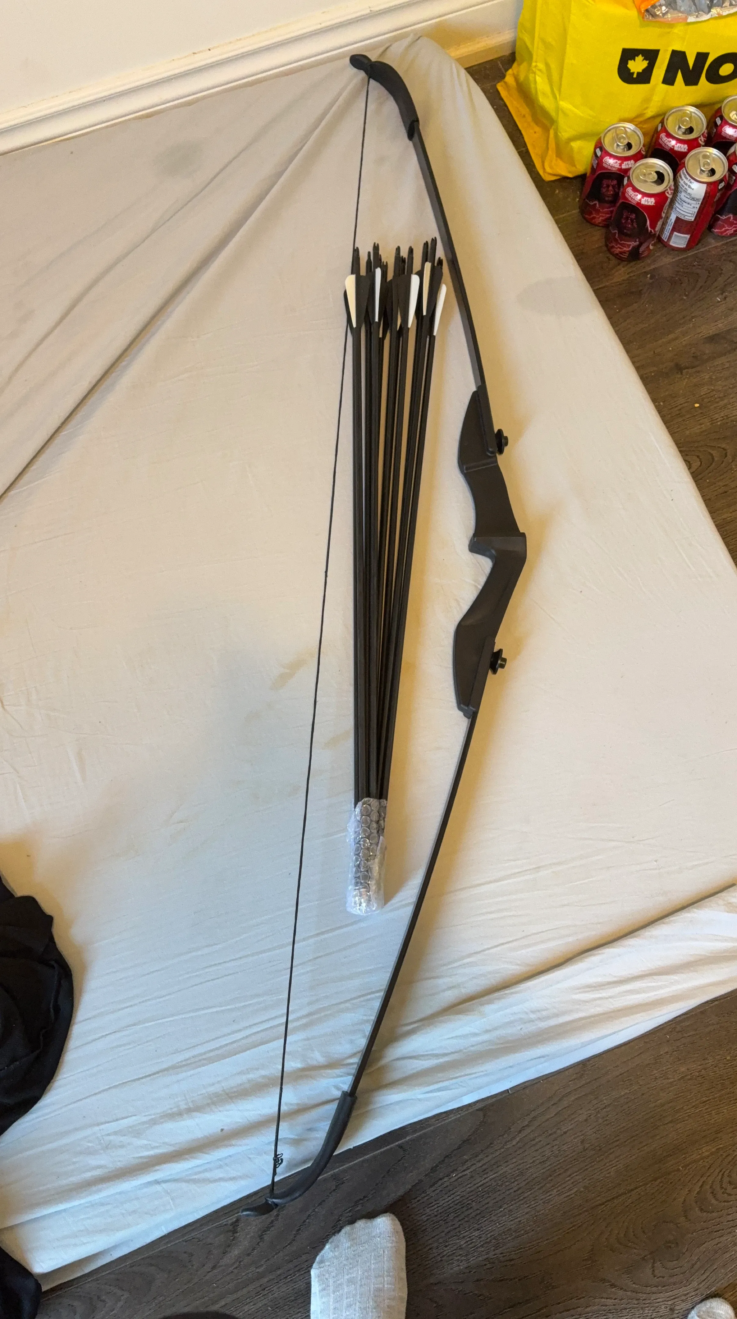 Selling a complete archery set, including a bow and a set of 12 arrows. Perfect for beginners or experienced archers looking for a reliable set to practice with. Ready for some outdoor fun?