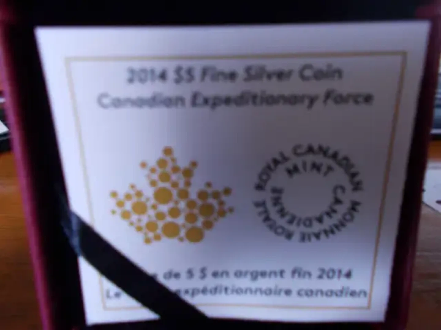 Selling a 2014 $5 fine silver coin commemorating the Canadian Expeditionary Force. It comes in its original box from the Royal Canadian Mint. A great addition to any collection! COA and box Limited edition