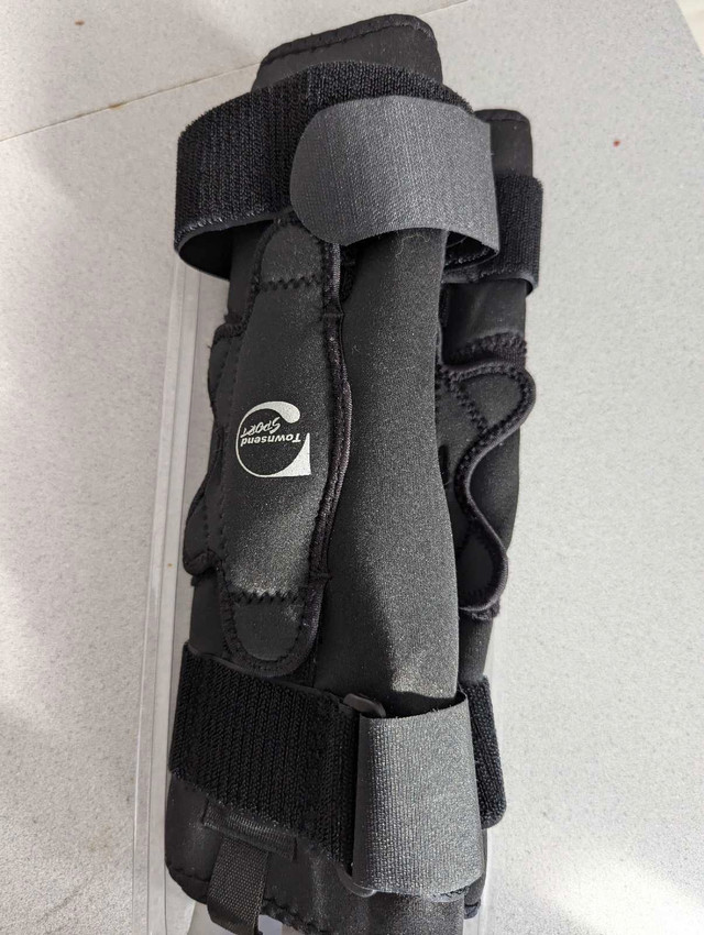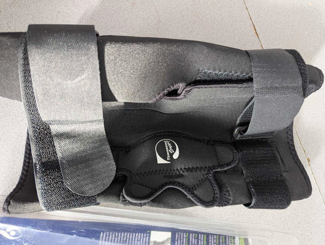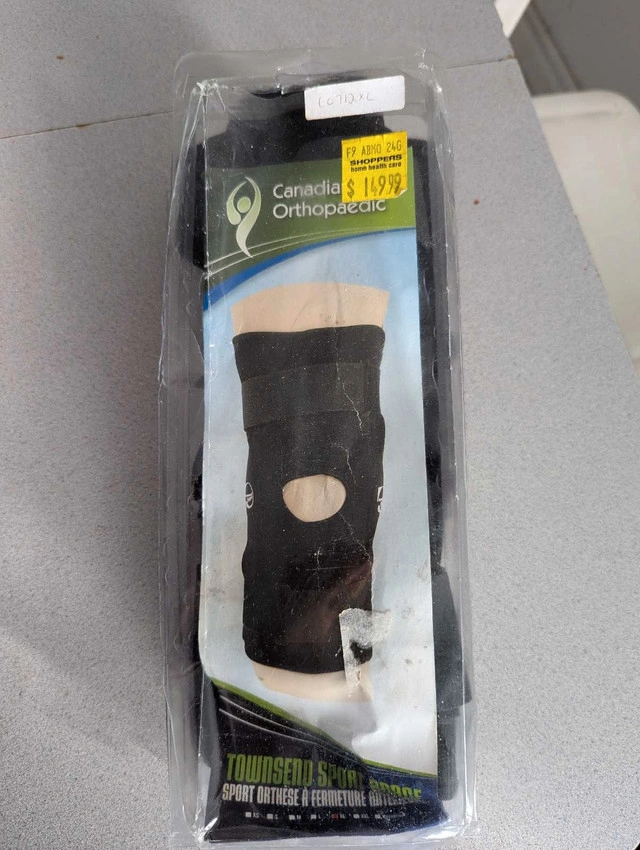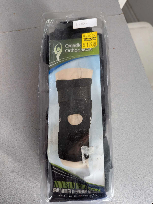 Package is messed up but item is new, only tried on (wrong size). The Townsend Sport Knee Brace provides the highest level of comfort and stability found in today's designs for patients and athletes. This model is available in both a 12" (2 strap) and a 16" (four strap) latex-free version, and is offered in three different choices for limiting the range of motion of your knee as desired. The Townsend Sport Knee Brace is perfect for any sport and features durable nylon pockets that encase the hinge bars, and sewn-in joint condyle pads for increased comfort at the joint line making it one of the most comfortable models that we sell. It has a popliteal cutout behind the knee to eliminate bunching in the rear, and is offered in an anterior closure design for quick fitting. Finally, the brace has an adjustable patella buttress pad (pull-on model only) to provide control of your kneecap for times when it's bothersome and causing pain around the front of your knee. Feel free to message if you have any questions!