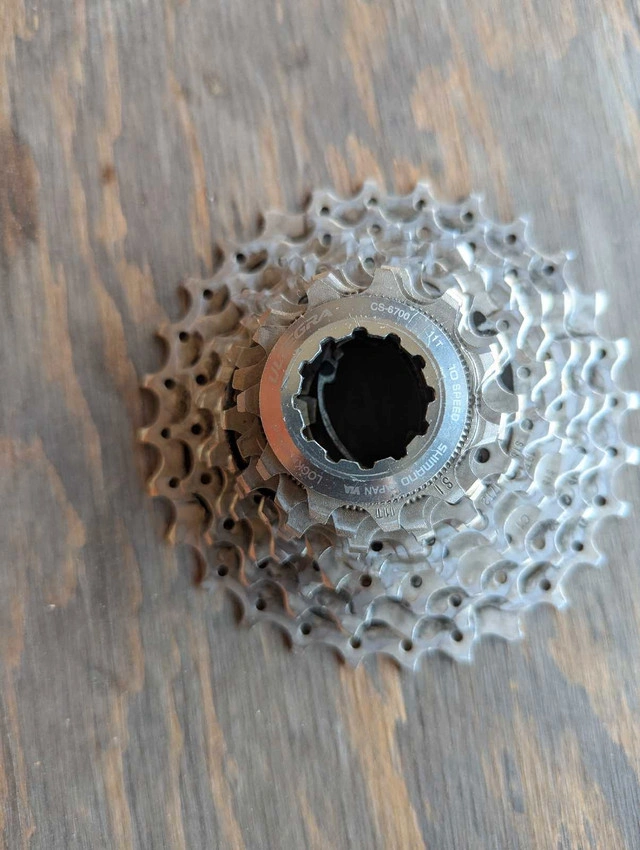 This is a used Shimano Ultegra CS-6700 10-speed cassette with an 11-28T configuration, perfect for road cycling enthusiasts. This cassette has been used and is ready to provide smooth and reliable shifting. Key features: * Brand: Shimano * Model: Ultegra CS-6700 * Speed: 10-speed * Range: 11-28T * Type: Road Bike I've priced this cassette at $45, which reflects its quality. If the ad is up, it's available!
