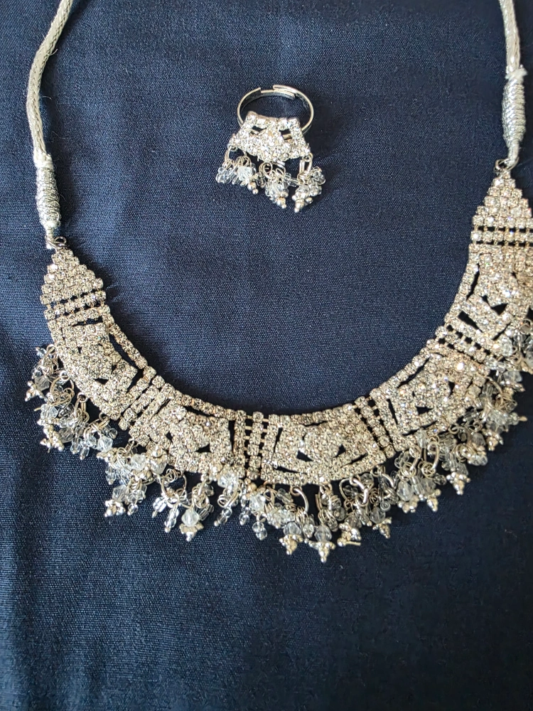 41Selling a beautiful necklace and jewelry set! This set includes a necklace, earrings, a ring, and other matching pieces. Perfect for adding a touch of elegance to any outfit.prices are different.