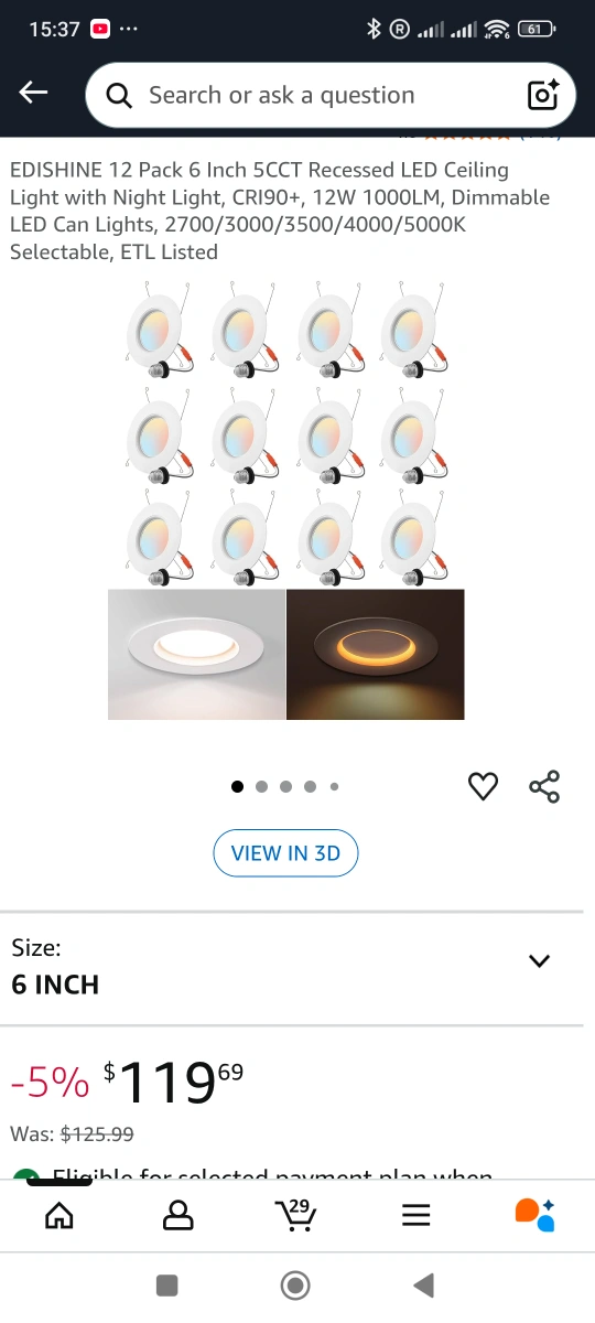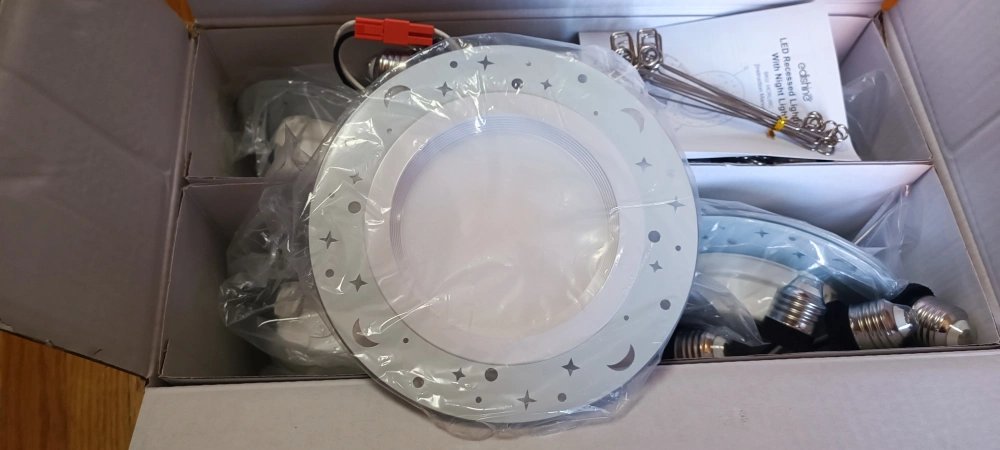I'm selling a brand new, in-box 12-pack of EDISHINE 6-inch LED Recessed Lighting with Night Light! These are dimmable and have a SKU of HCRL06C. Retails for $119.69