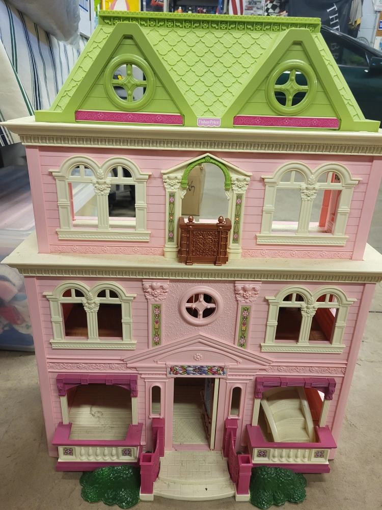 Selling a Vintage Fisher Price dollhouse in pink and green. It's in great shape and ready for a new home! Perfect for imaginative play and creating fun stories
