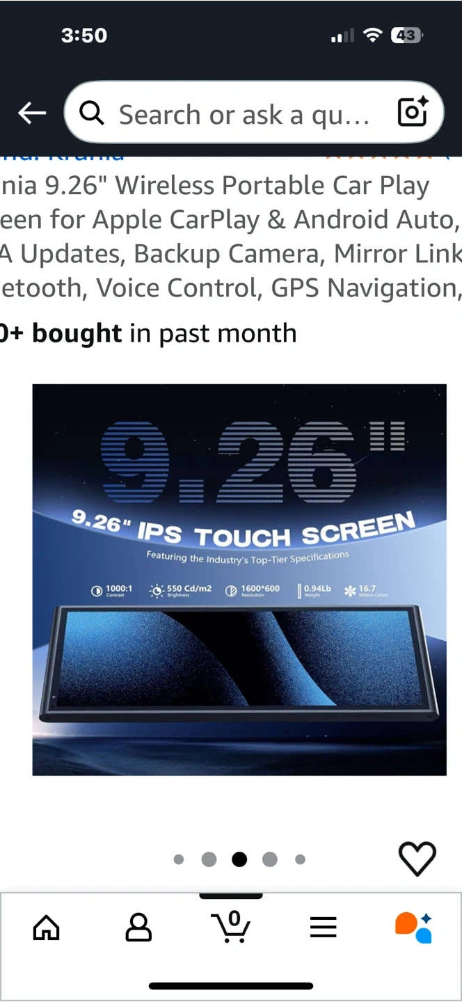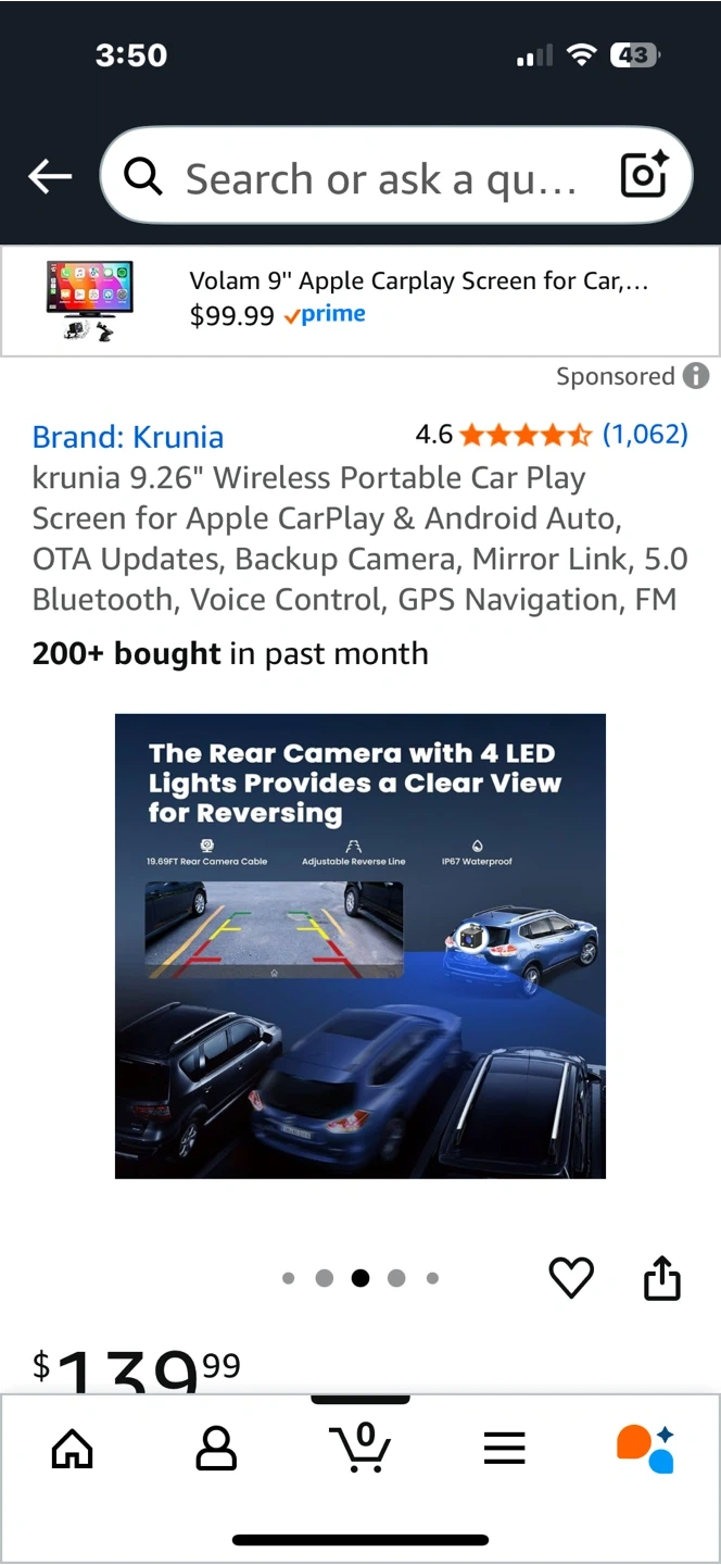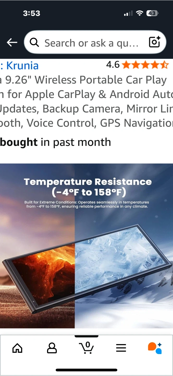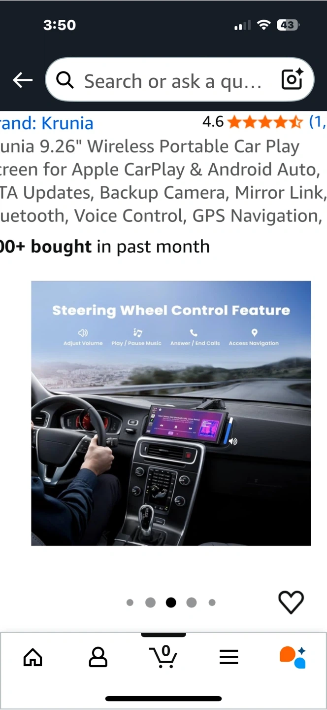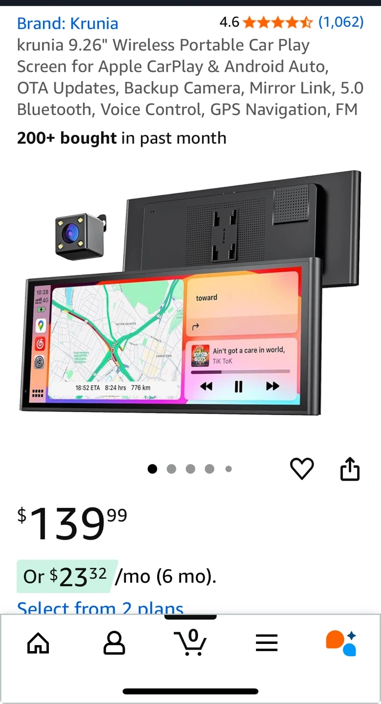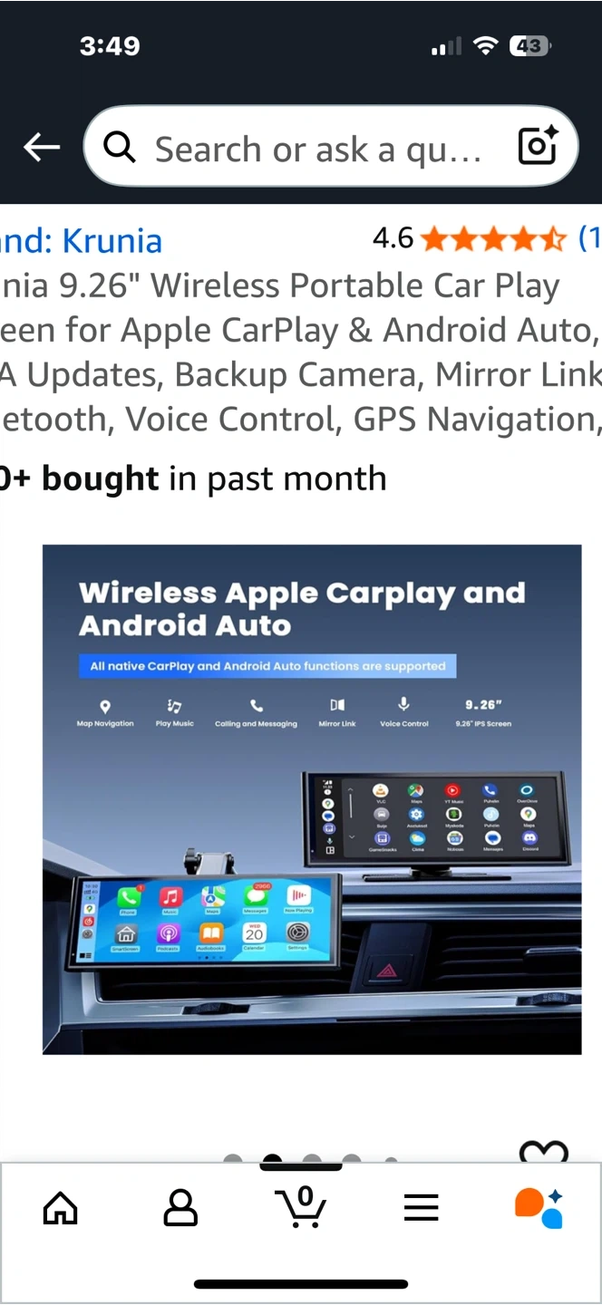 Selling a Krunia 9.26" Wireless Portable Car Play Screen for Apple CarPlay & Android Auto. Key features include OTA updates, backup camera, mirror link, Bluetooth, voice control, and GPS navigation. New open box