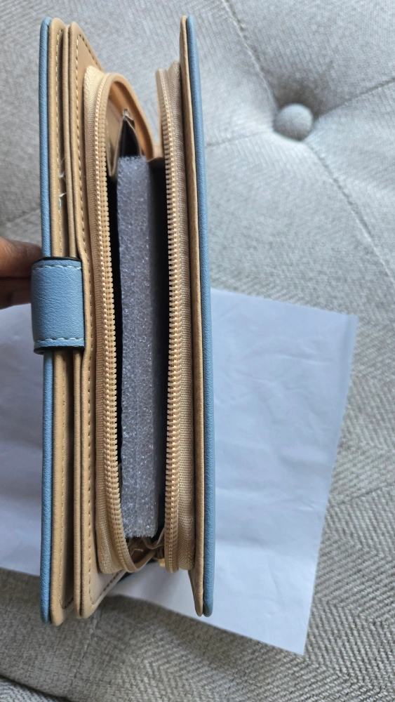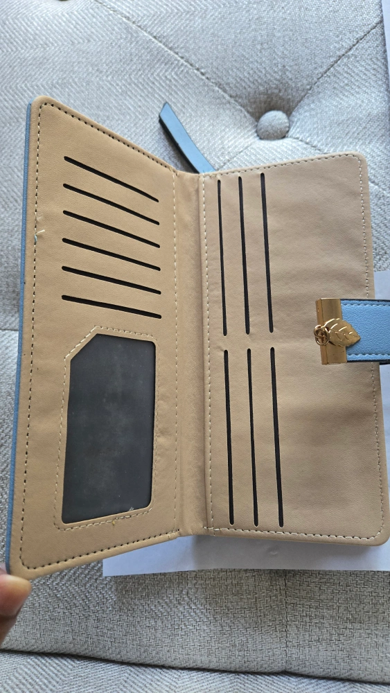 Selling a brand new wallet featuring a cute leaf design! It's a light blue colour and has lots of space for cards and cash. Never been used, so it's in perfect condition