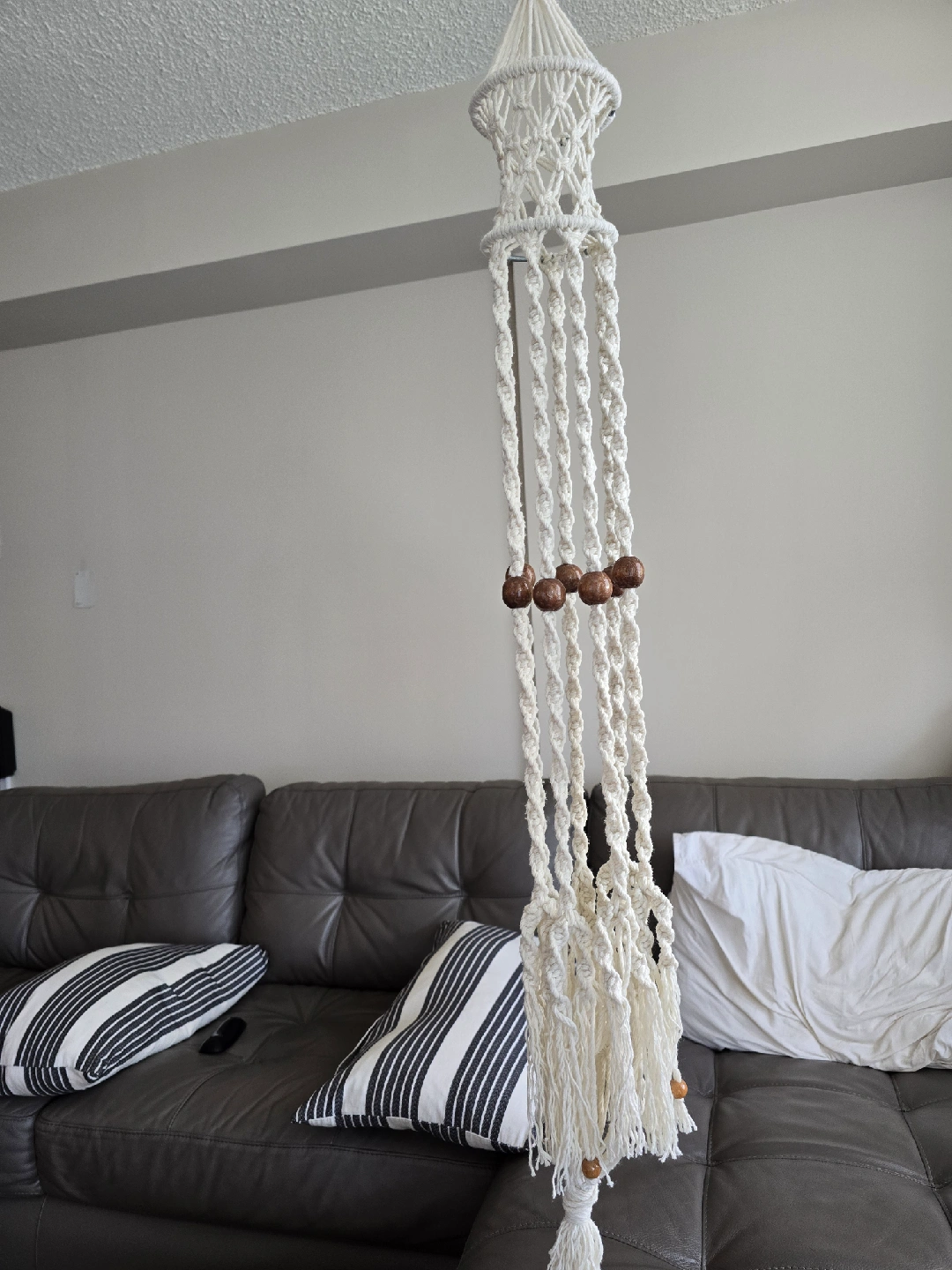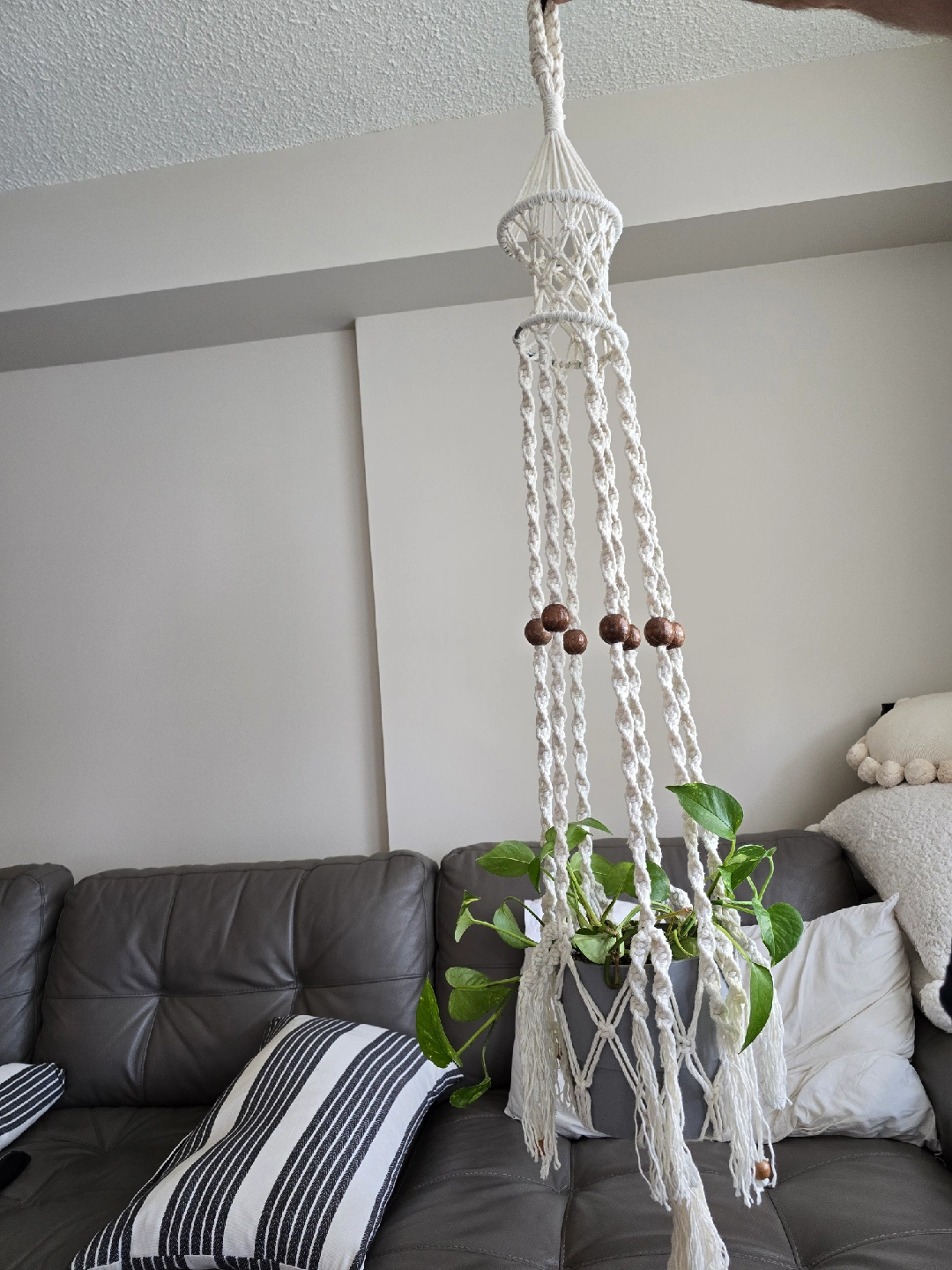 Add a touch of boho charm to your home with this macrame plant hanger! It's perfect for displaying your favourite plants and adding a unique, handcrafted vibe to any room. The hanger is in great condition and ready to bring some natural beauty to your space *Plant not included pick up only Cash only see my other posts