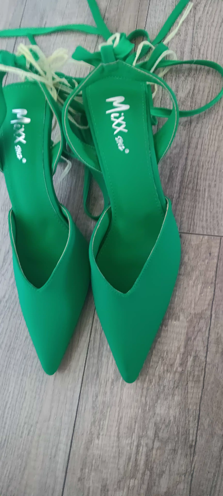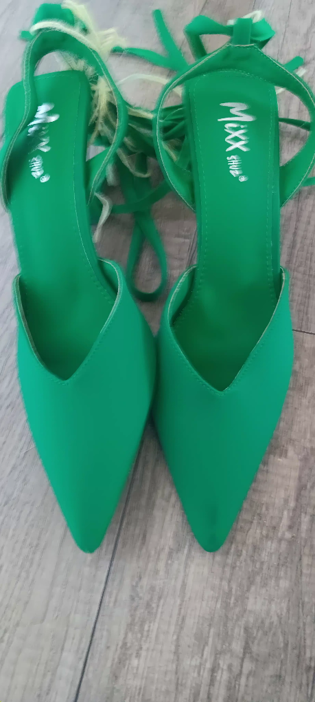 These green heels from Mixx Shuz are sure to turn heads! They feature a stylish wrap-around design. Perfect for adding a pop of colour to any outfit