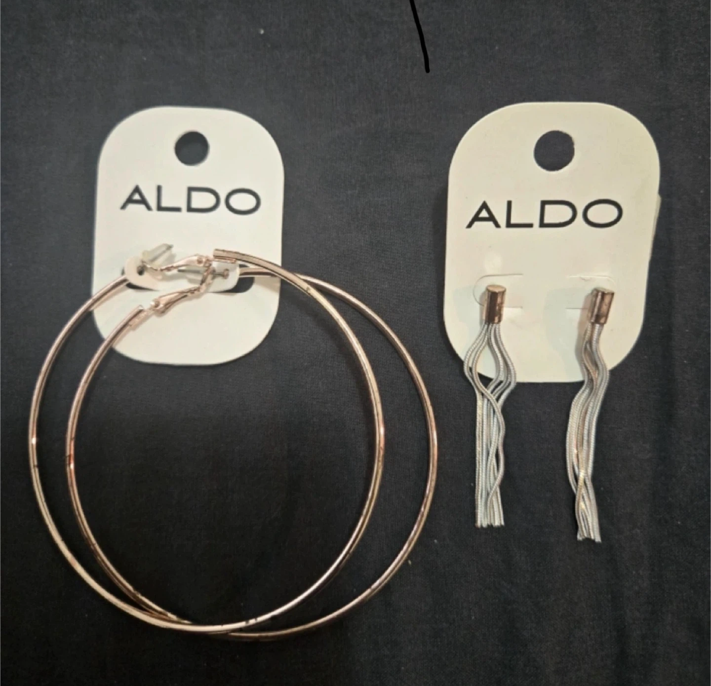 Please check my other listings, giving this for free with any purchase from my other listings. Two new pairs of Aldo earrings. Includes a pair of large hoop earrings and a pair of dangle earrings. Perfect for adding a touch of elegance to any outfit. Brand new, comes with tags. *Only one free item per purchase.