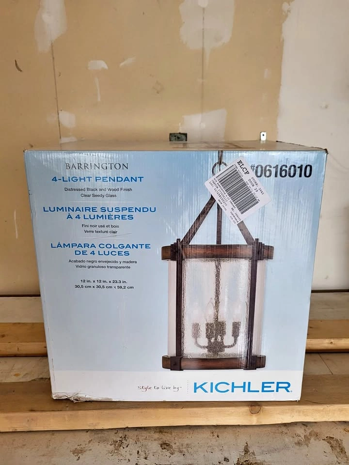 Brand new in box and never used light by Kichler. Ended up not liking the style at home and passed returned day.
