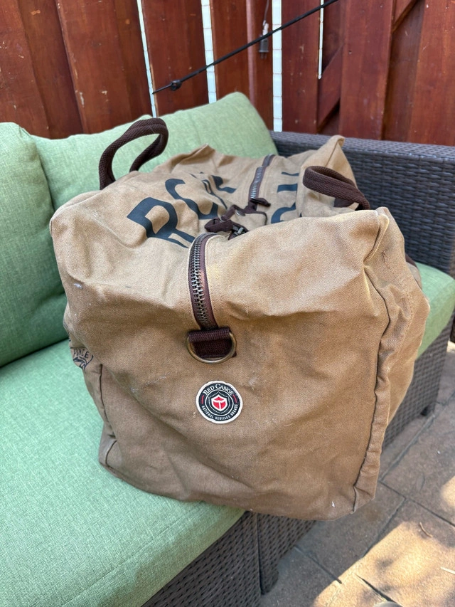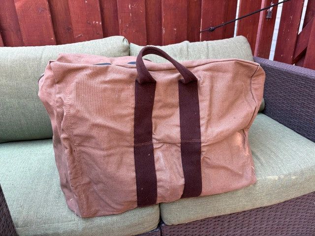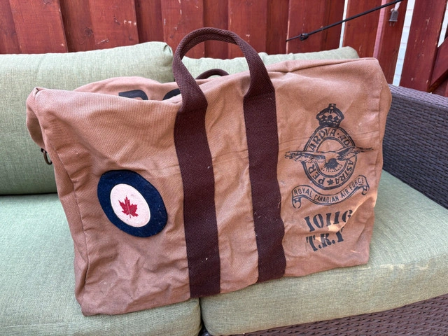 This RCAF heavy canvas bag is perfect for collectors or anyone needing a robust carryall. It’s tan canvas and marked with the Royal Canadian Air Force insignia, adding a touch of vintage flair. It's in good condition overall, but missing shoulder strap. Sorry. Features: - Durable heavy canvas material - Authentic RCAF markings - Sturdy carry handles - Spacious main compartment - Vintage design If the ad is still up, the bag is available.